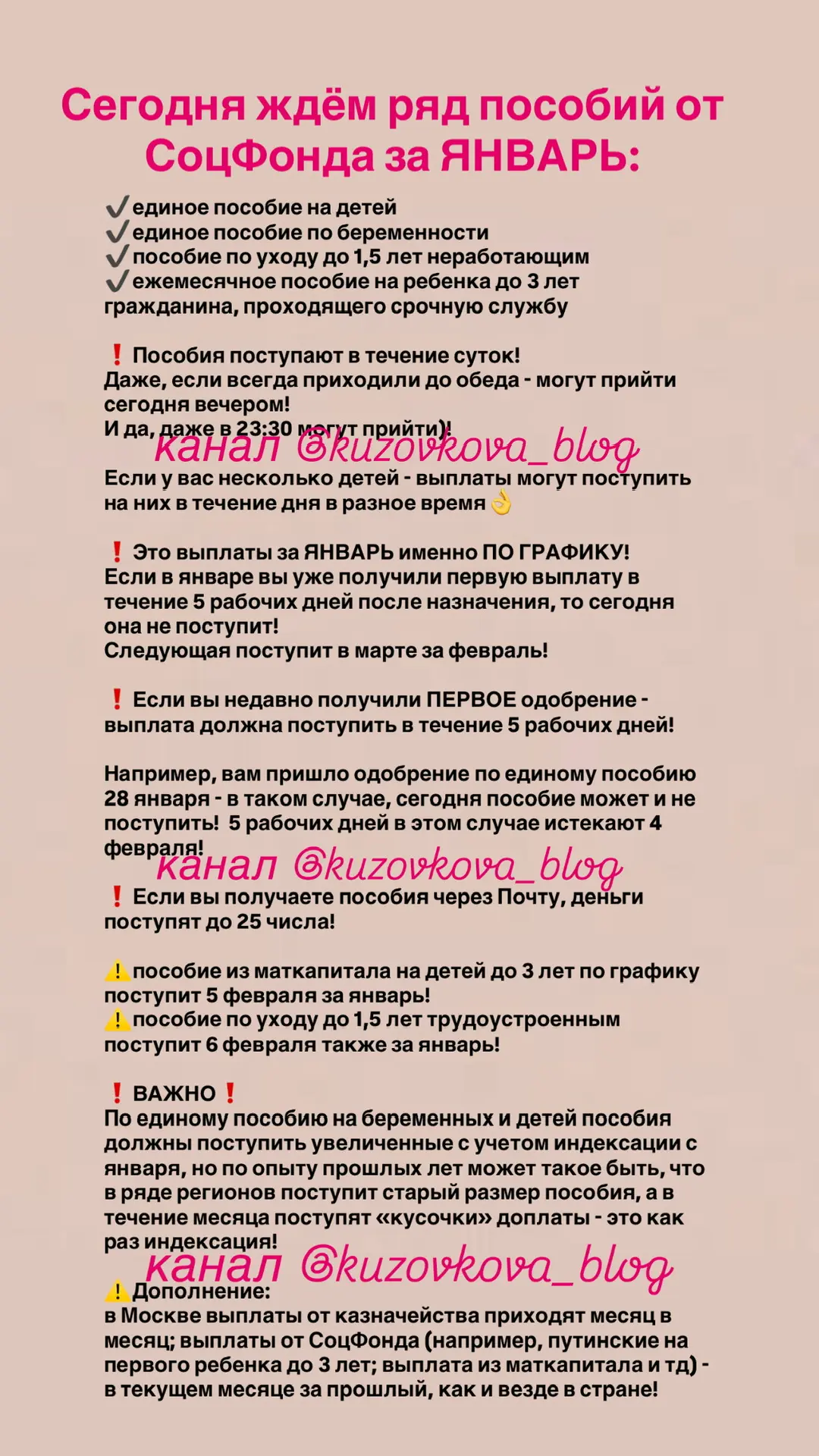 ‼️ Сегодня ждём ряд пособий от СоцФонда за ЯНВАРЬ👆🏻