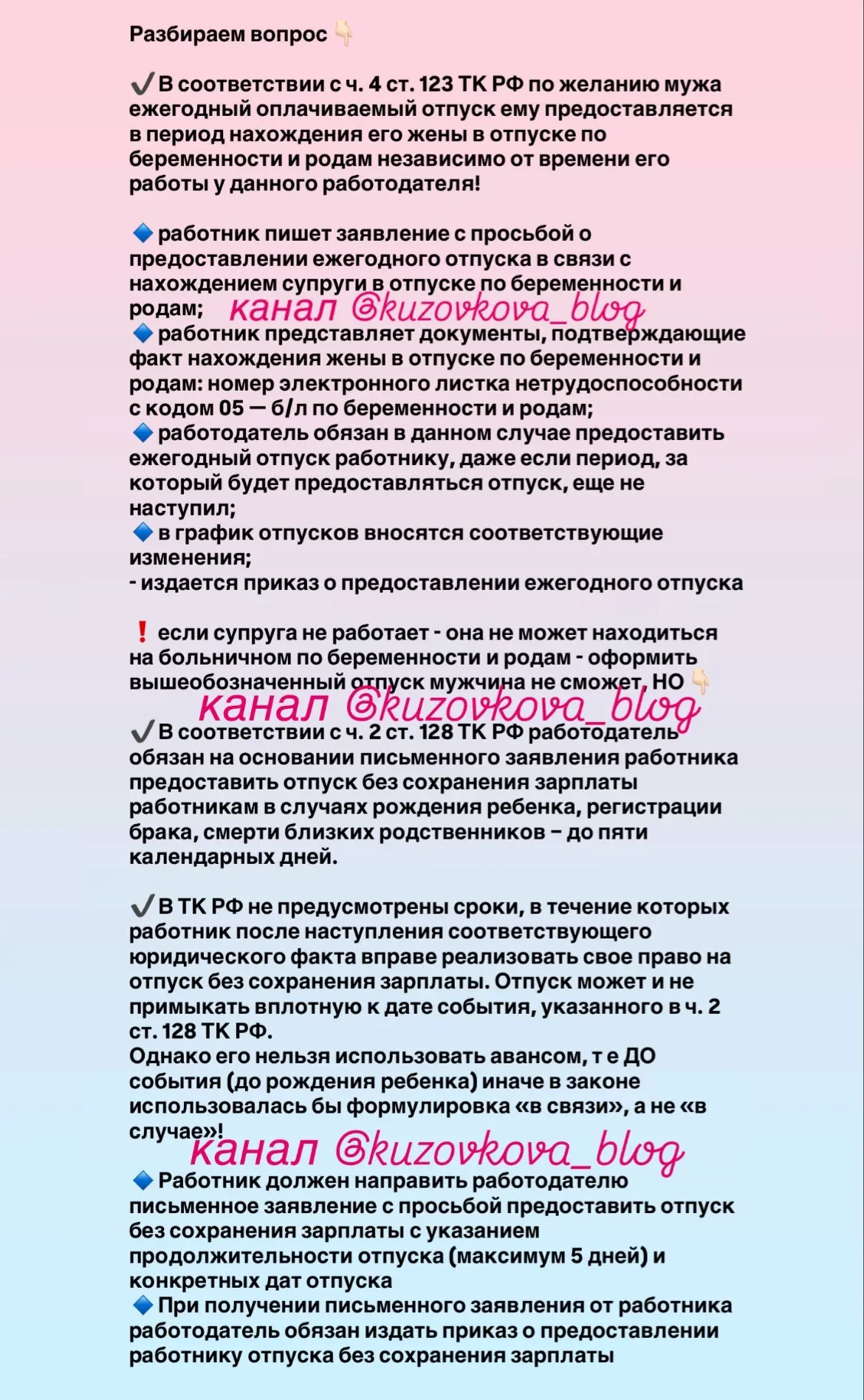 ‼️На какие законы ссылаться, если работодатель не дает отпуск, а жена собирается ложиться в роддом и не с кем оставить старшего ребенка