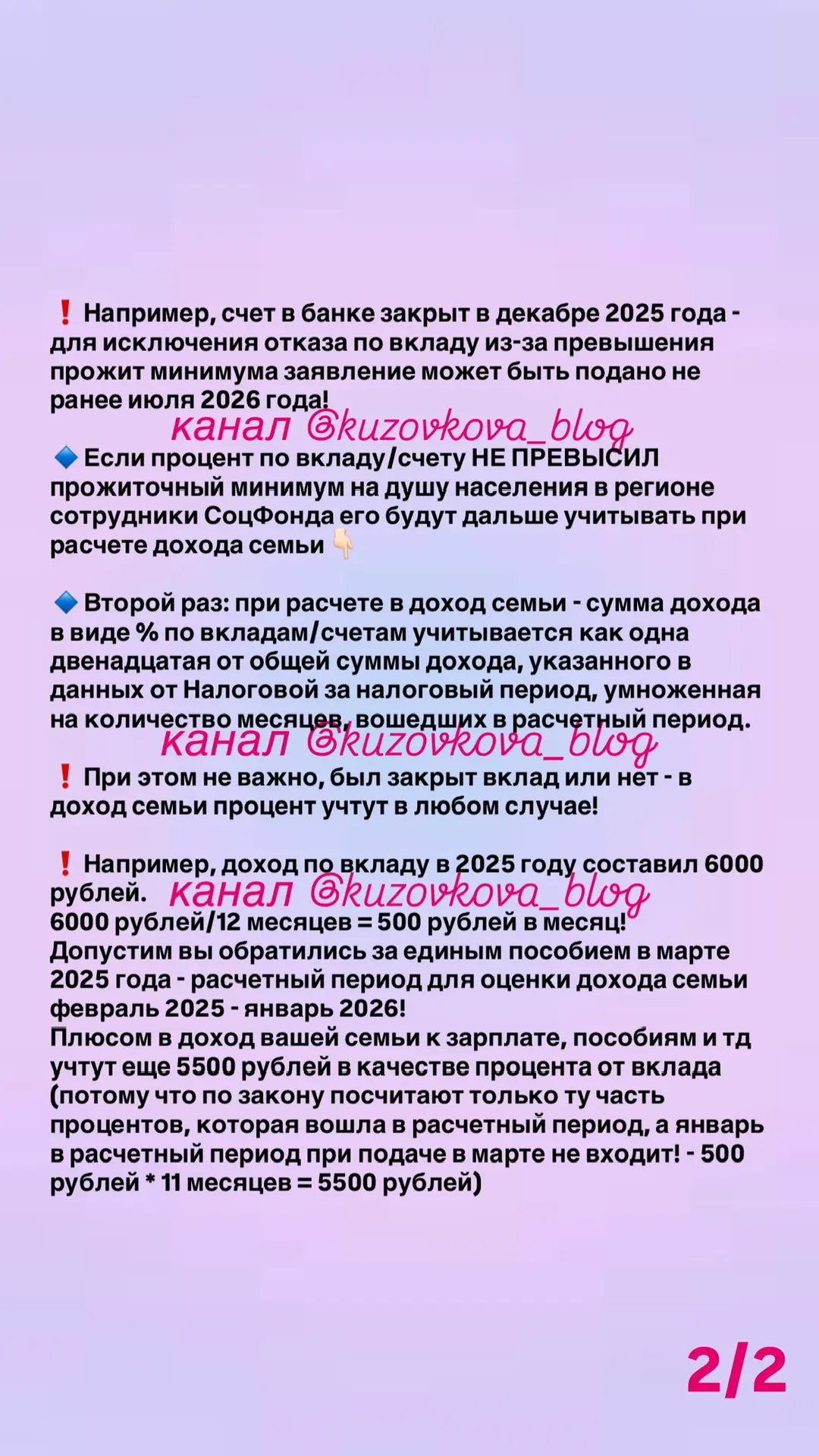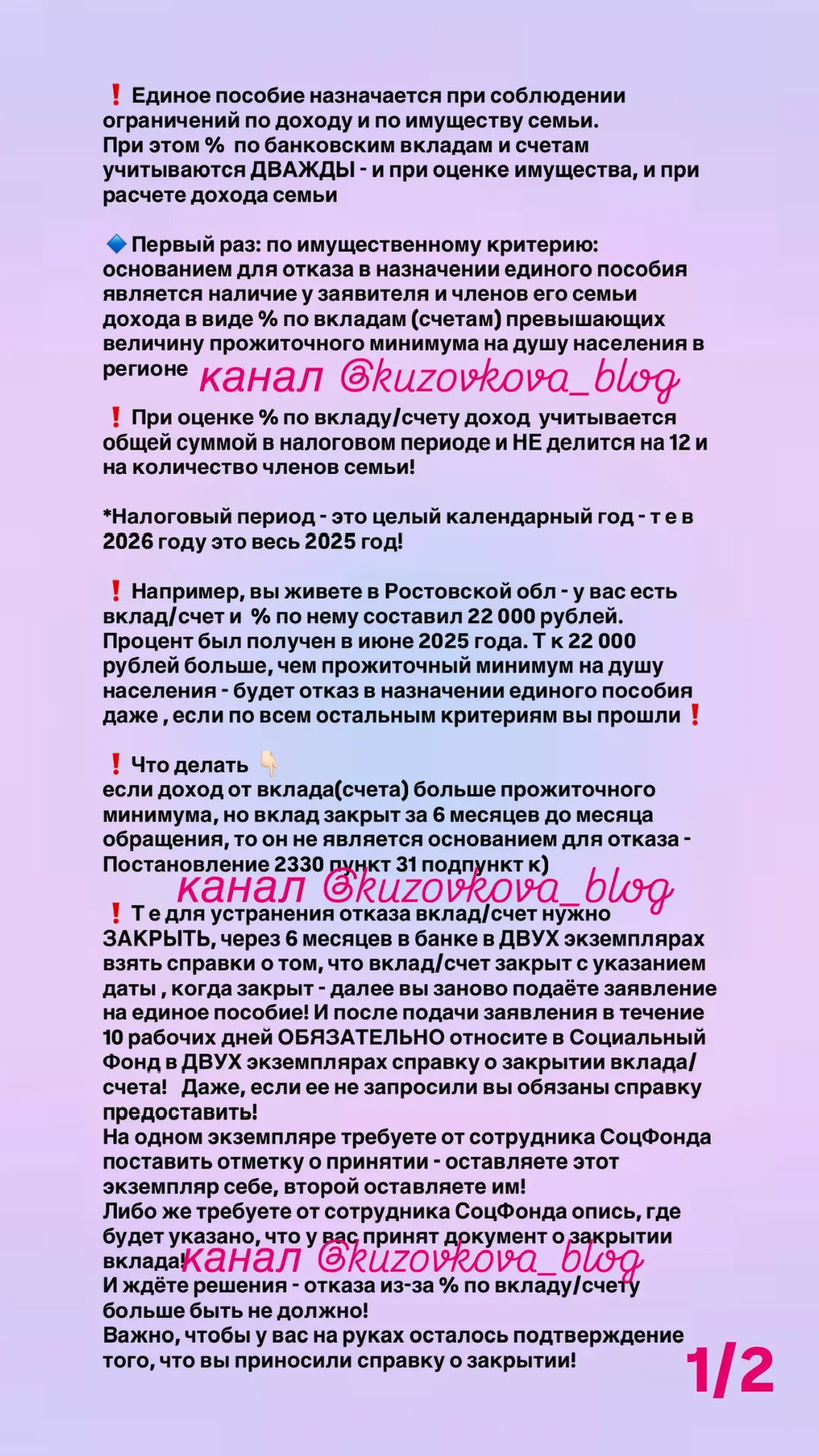 Подробно о том, как вклады и счета могут не дать вам получить единое пособие , даже если по остальным условиям вы проходите 👆🏻