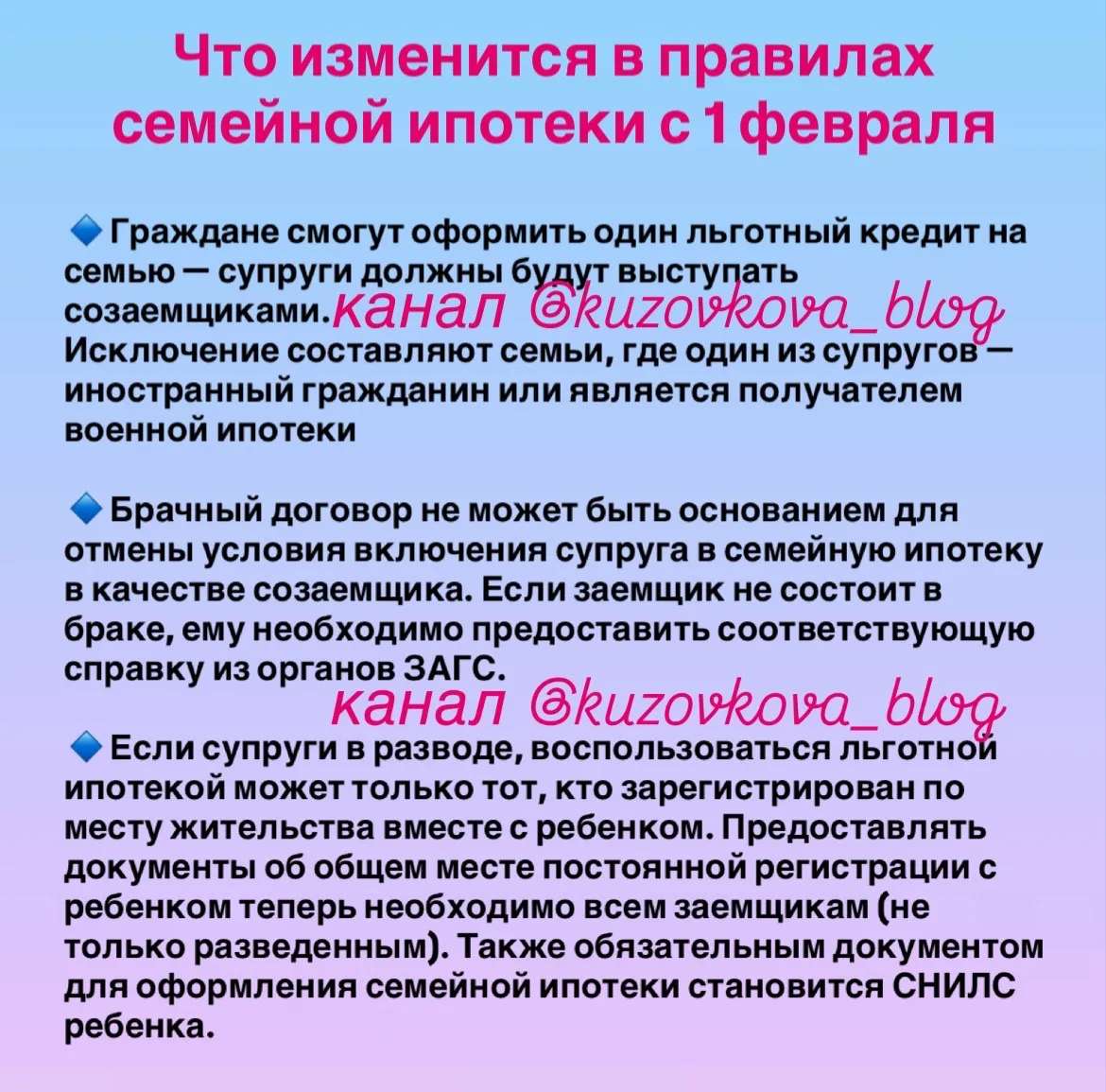 ‼️Что изменится в правилах семейной ипотеки с 1 февраля 👆🏻