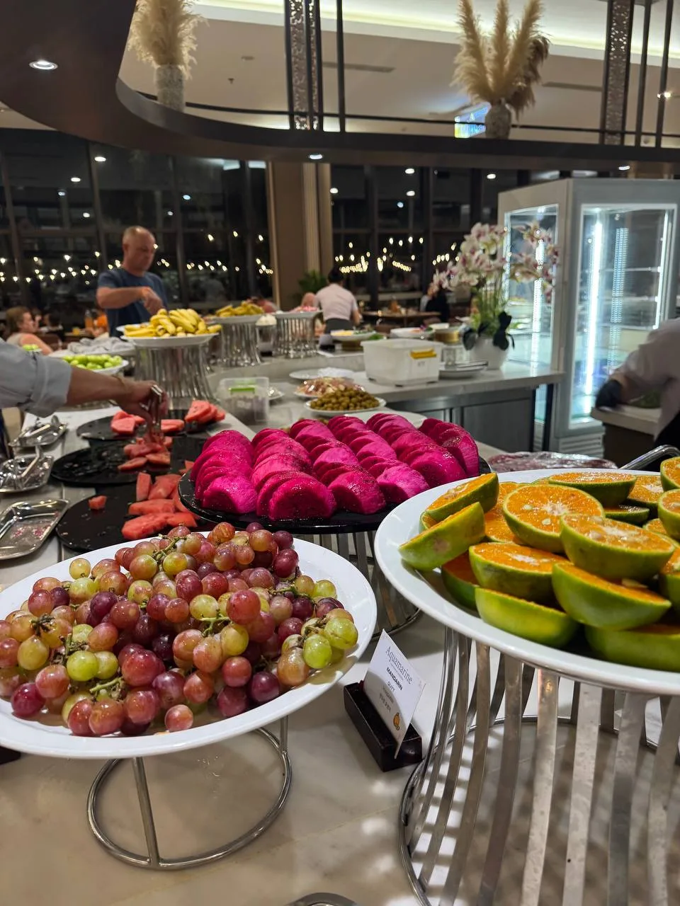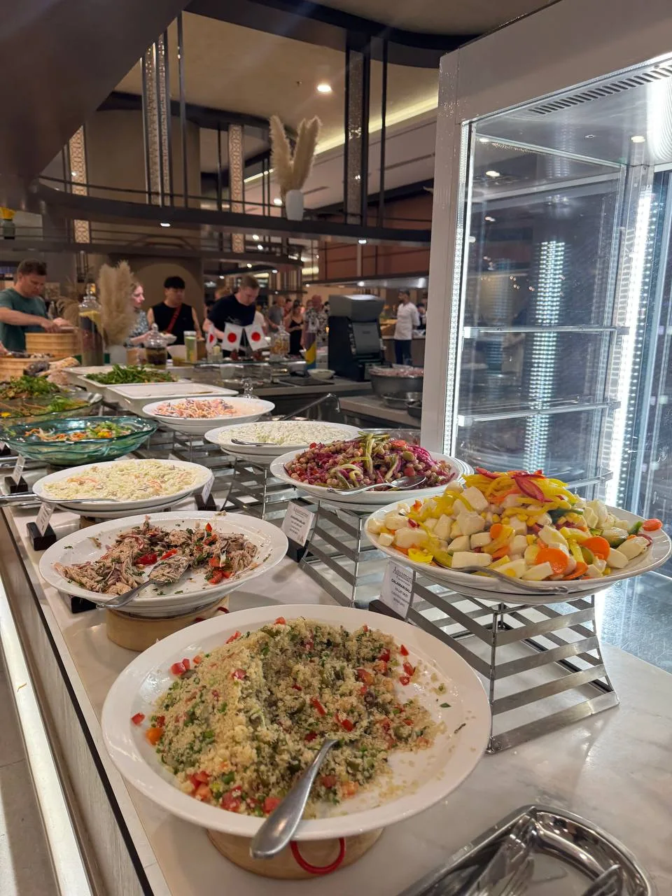 Если кратко, то нас кормят вкусно. Много. Разнообразно. Ресторан работает практически без перебоя. Есть буквально получасовые перерывы.