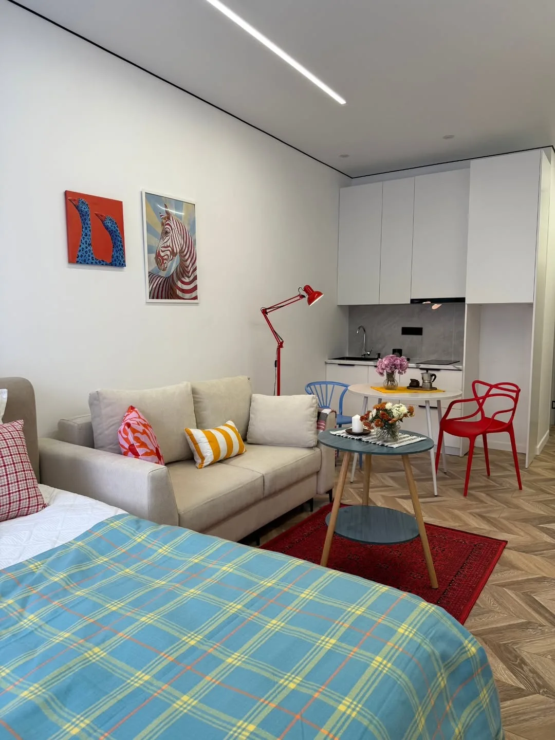 Смелые цвета, графика и акценты создали выразительный интерьер на площади 29 м².