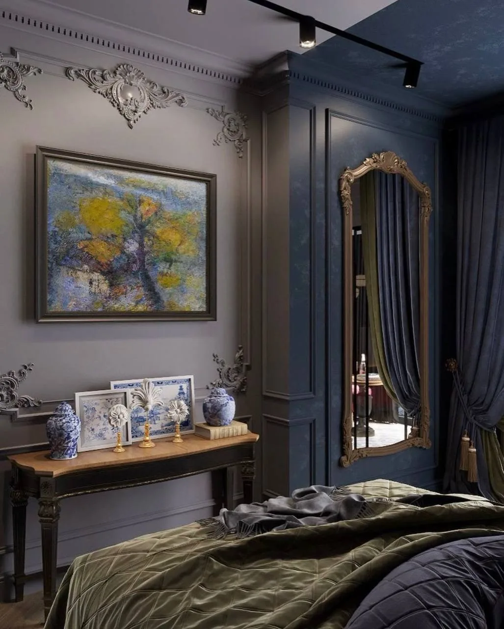 Это вариант внутреннего оформления, в котором сочетаются гармоничность, изящество и помпезность обстановки. Стилю характерны масштабность и обилие архитектурных элементов.