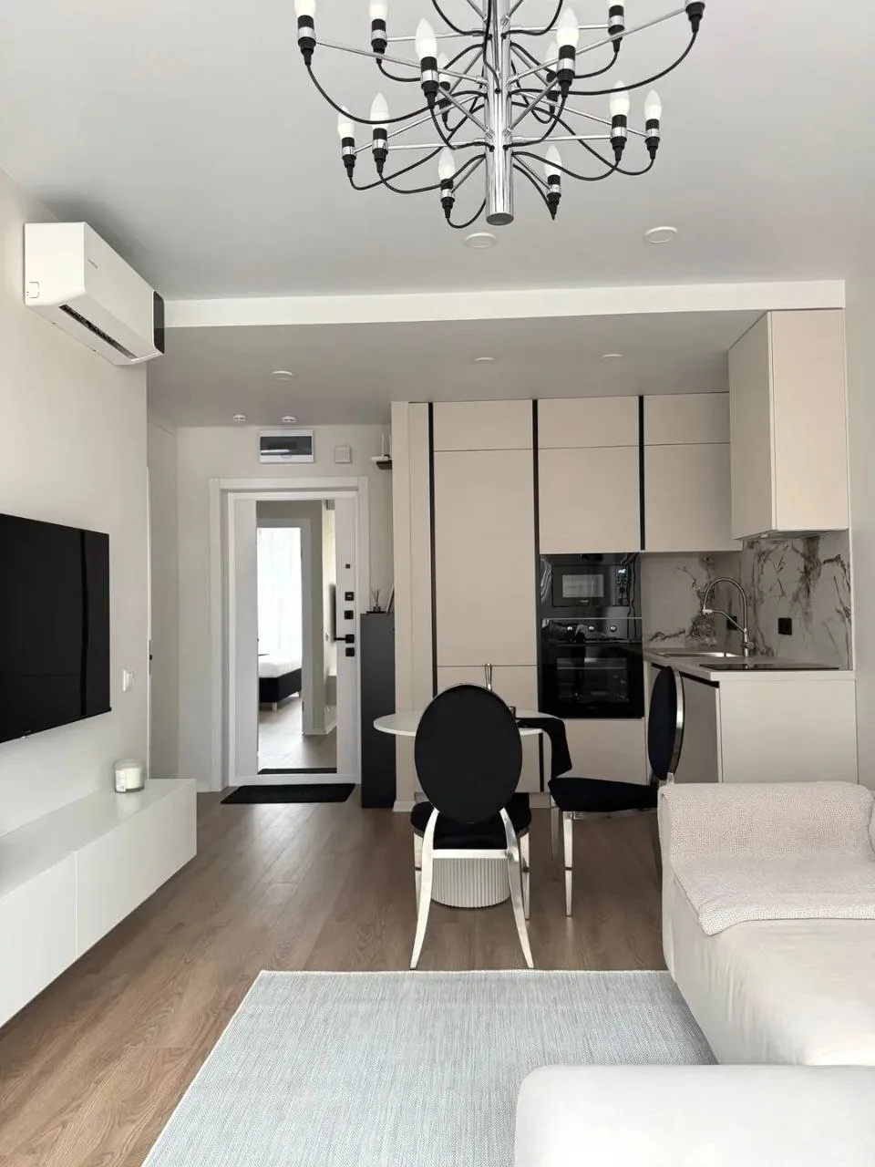Небольшой метраж оформили практично и стильно, с акцентом на удобство.