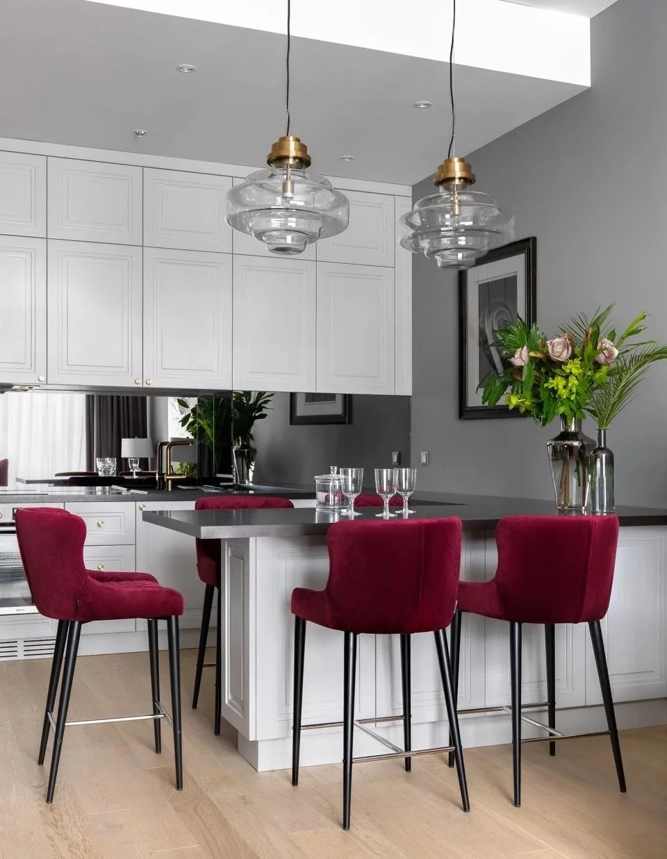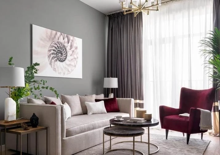 Квартира 57 м²: серые стены и капля бархатного бургундского