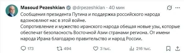 "Отсутствие Аятоллы Хаменеи невыносимо. Если есть хоть малейшие страдания, то на пути вас ждут бесчисленные сокровища. Наша земля – наша честь. Пролитие крови сионистов и Трампа – нынешнее требование Имама Махди".