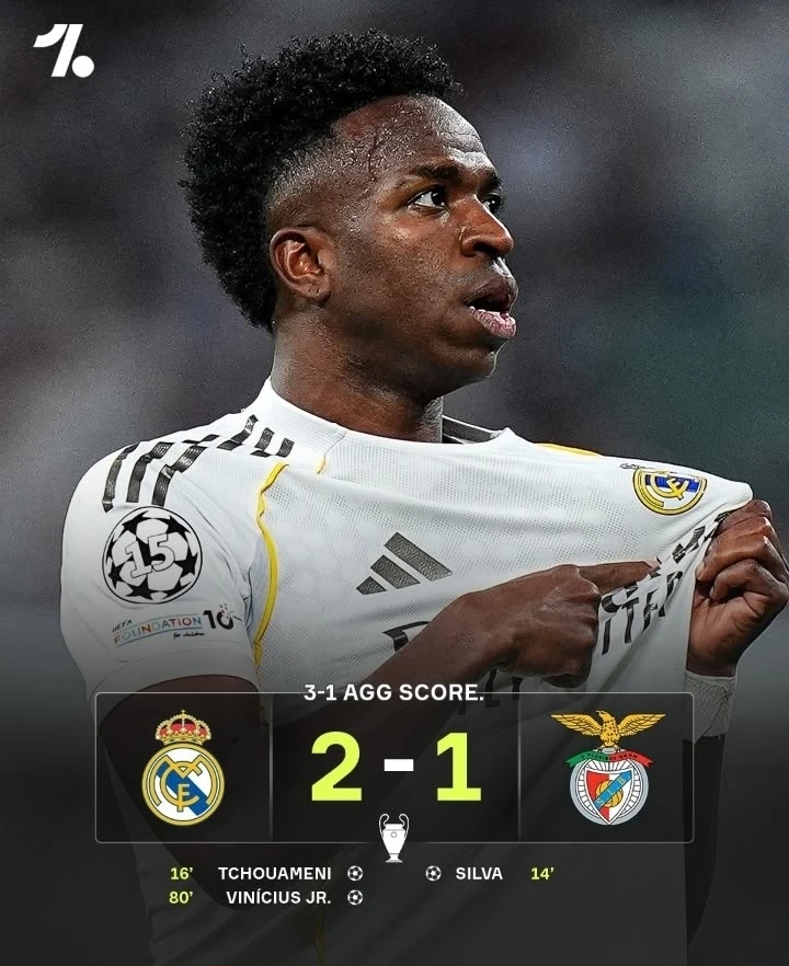 «Реал Мадрид» одерживает домашнюю победу над «Бенфикой» в ответном матче Лиги Чемпионов. Теперь Королевский клуб сыграет либо со «Спортингом», либо с «Манчестер Сити» в 1/8 финала.