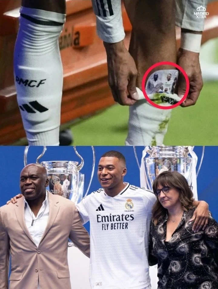 На щитках Мбаппе есть фотография с его семьей с презентации. 🥺🤍
