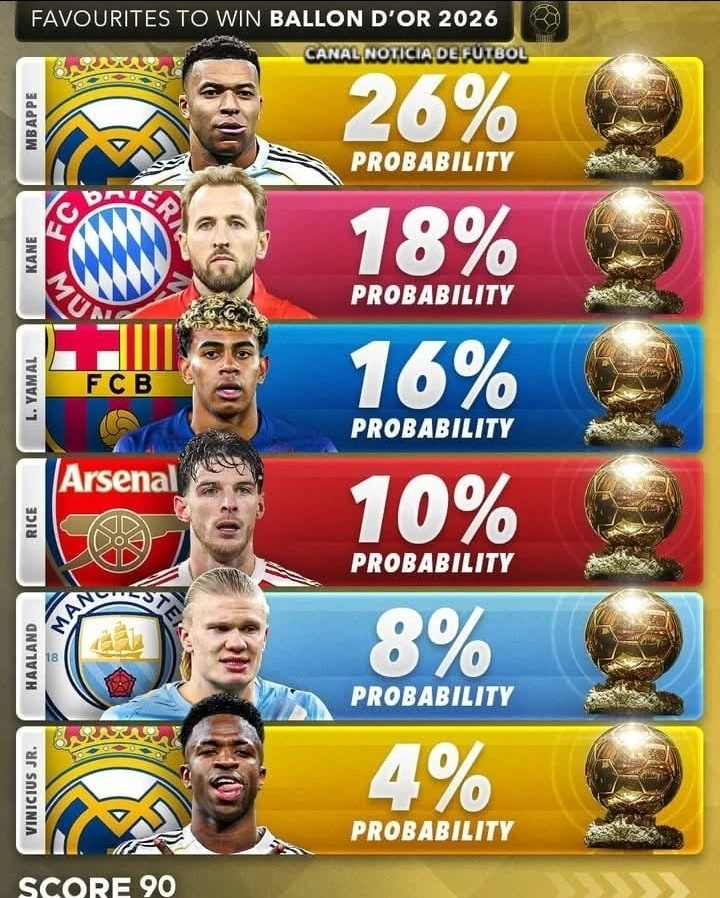 Килиан Мбаппе продолжает лидировать на награду «Золотого Мяча». 🔥