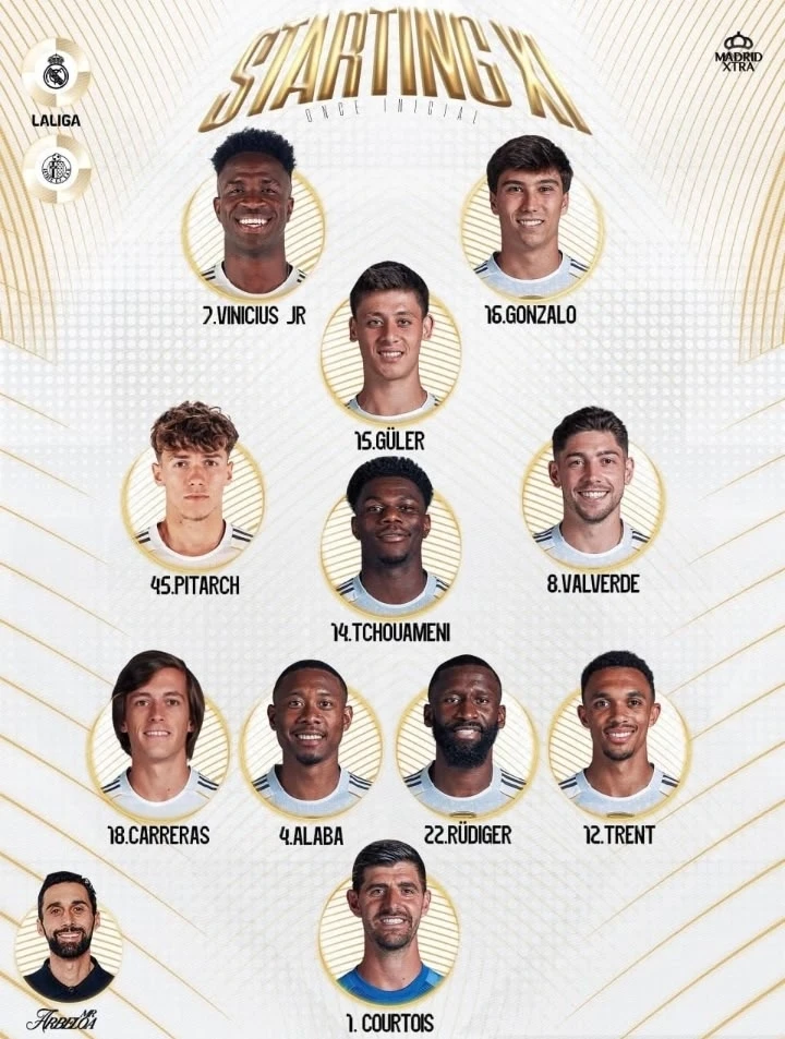 🔥Стартовый состав «Реала» на матч против «Хетафе».