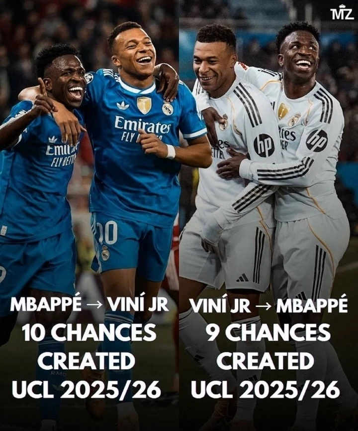 📊 Килиан Мбаппе и Винисиус создали больше всего голевых моментов друг для друга, чем любая другая пара в Лиге чемпионов в этом сезоне.