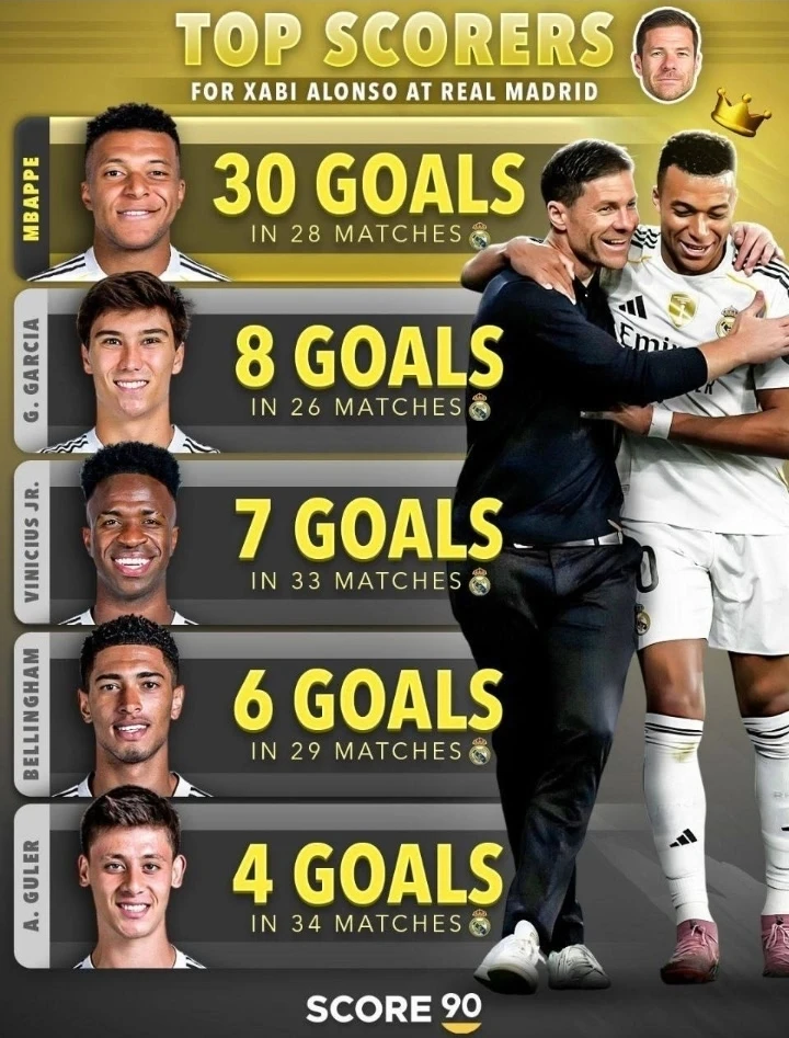 📊 Лучшие бомбардиры «Реала» под руководством Хаби Алонсо