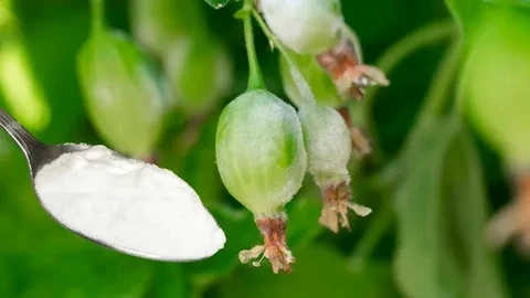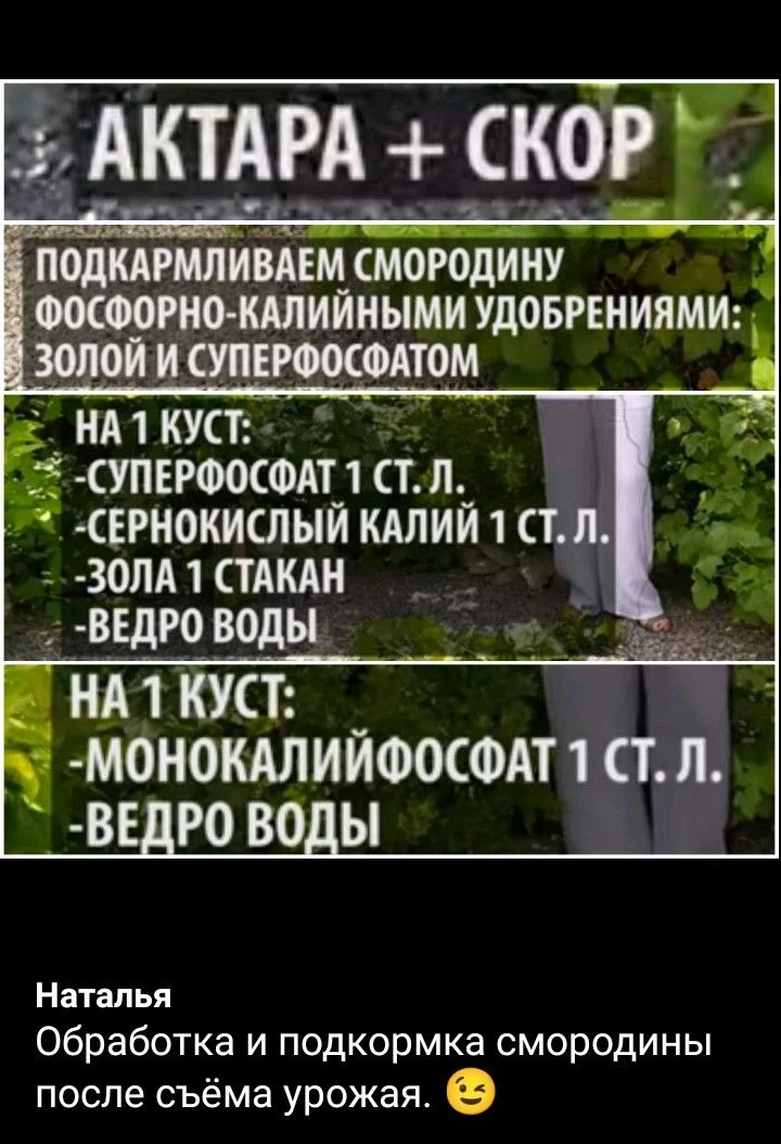 При завязывании ягод: → 1 ст. ложка нитрофоски + 2 ст. ложки гумата калия на 10 л воды. Норма — 3 ведра на куст.