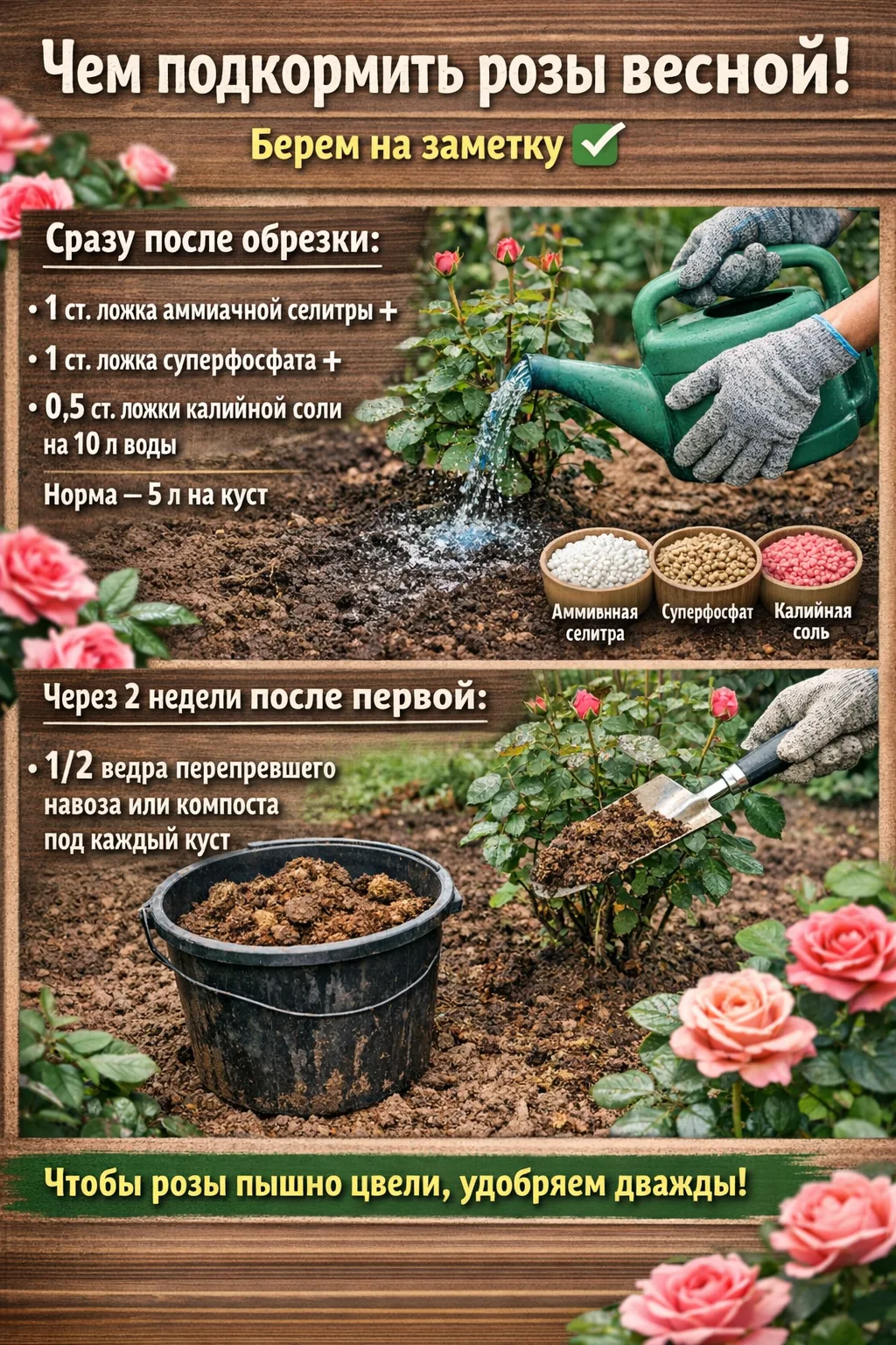 Для быстрого эффекта опрыскайте розы раствором мочевины (1 ст. ложка на 10 л воды) по листьям — это особенно полезно, если розы ослаблены.