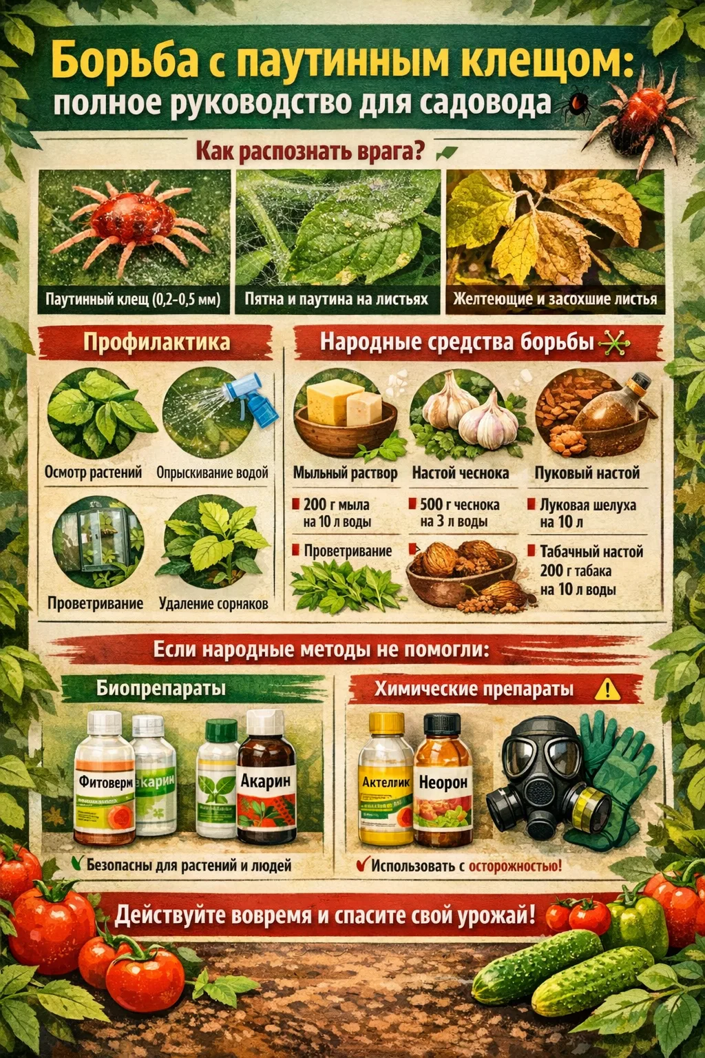 Паутинный клещ — серьёзный враг, но с ним можно справиться. Главное — вовремя заметить, правильно обработать и не допустить повторного появления. Удачи в борьбе за урожай! 💪🥒🍅