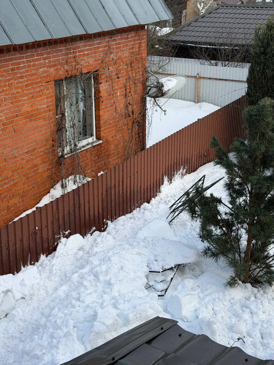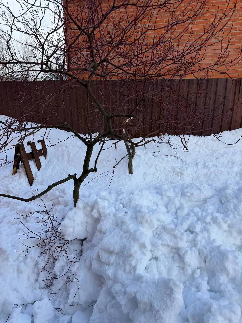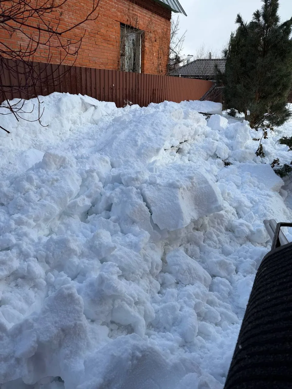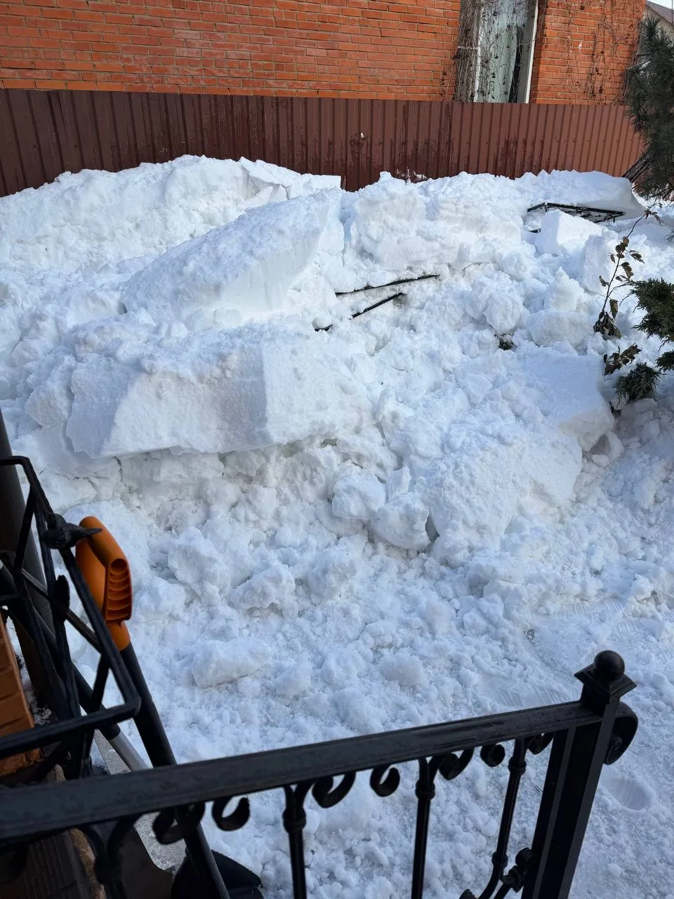 Разгребли, с соседнего дома сошел снег с крыши. Там никто не живет. Оттепелей не было и скопилось за зиму очень много.