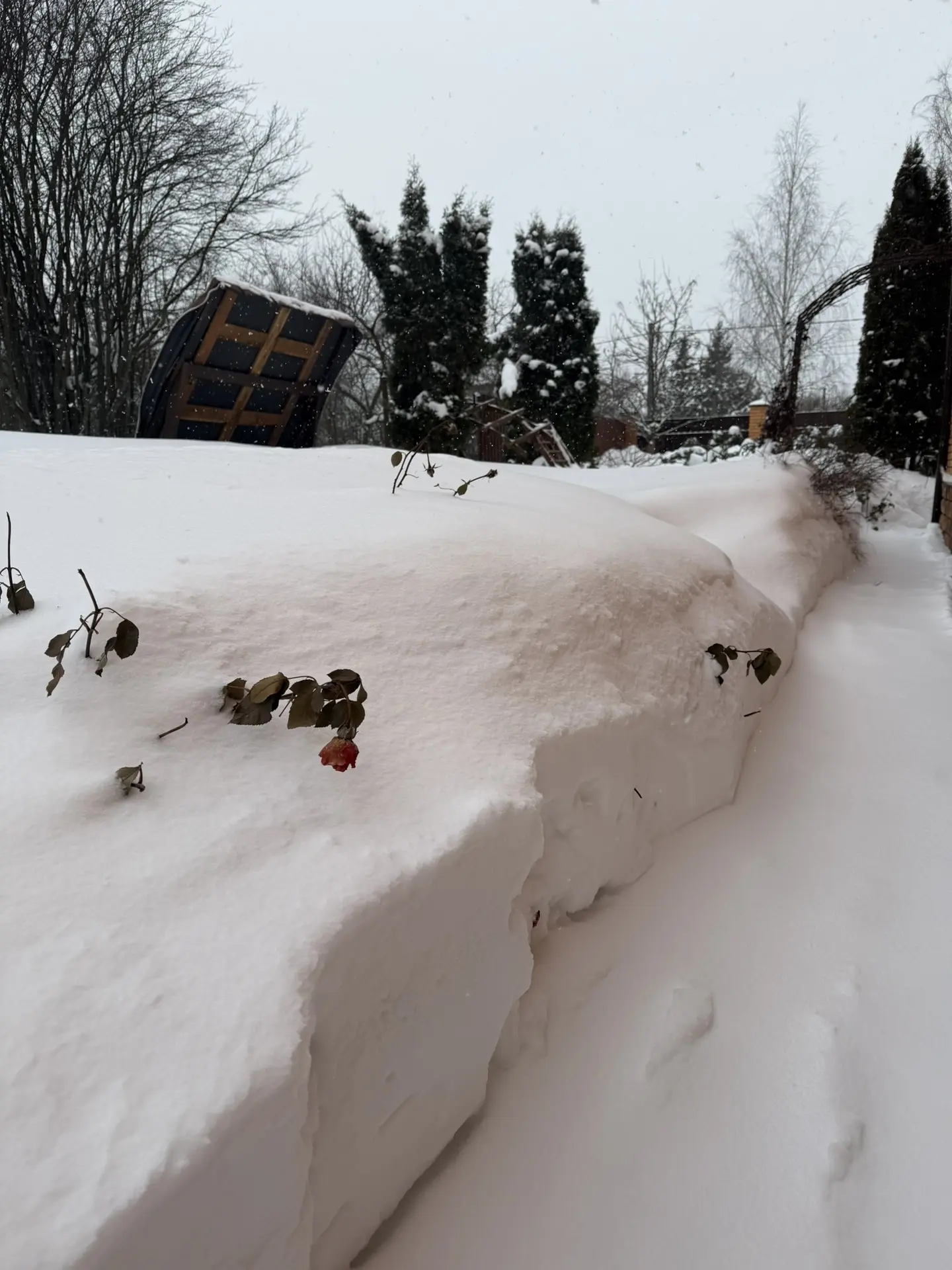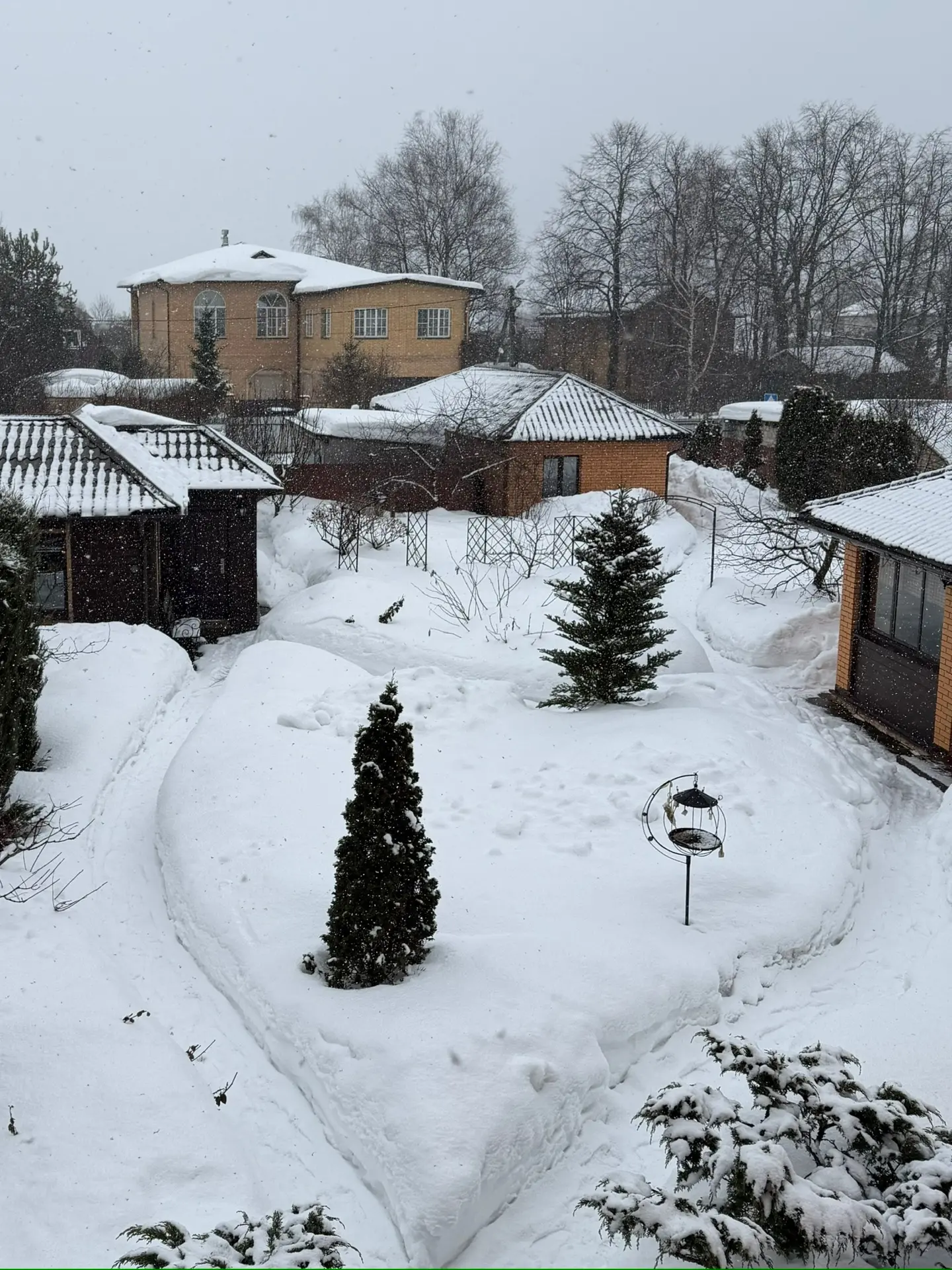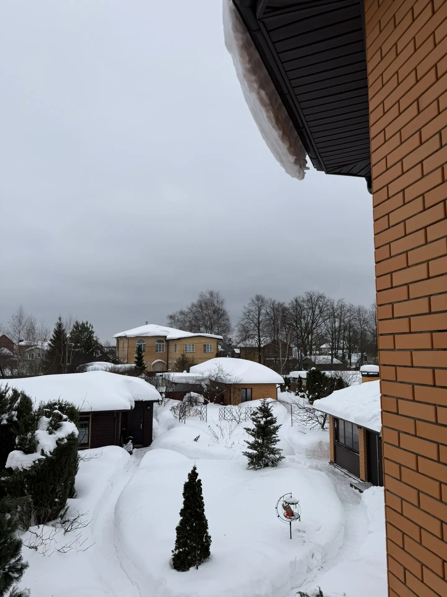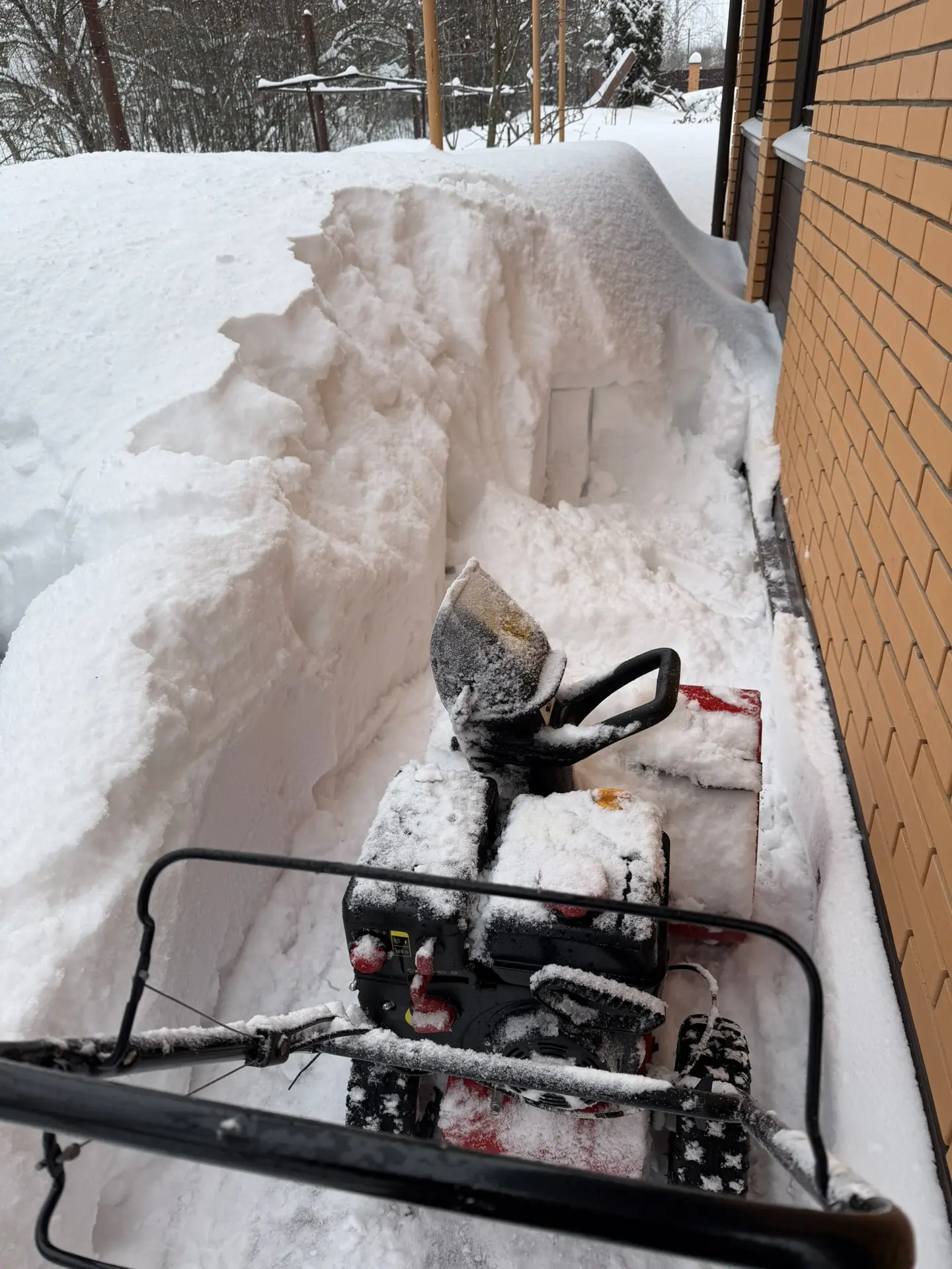 Разгребли, с соседнего дома сошел снег с крыши. Там никто не живет. Оттепелей не было и скопилось за зиму очень много.