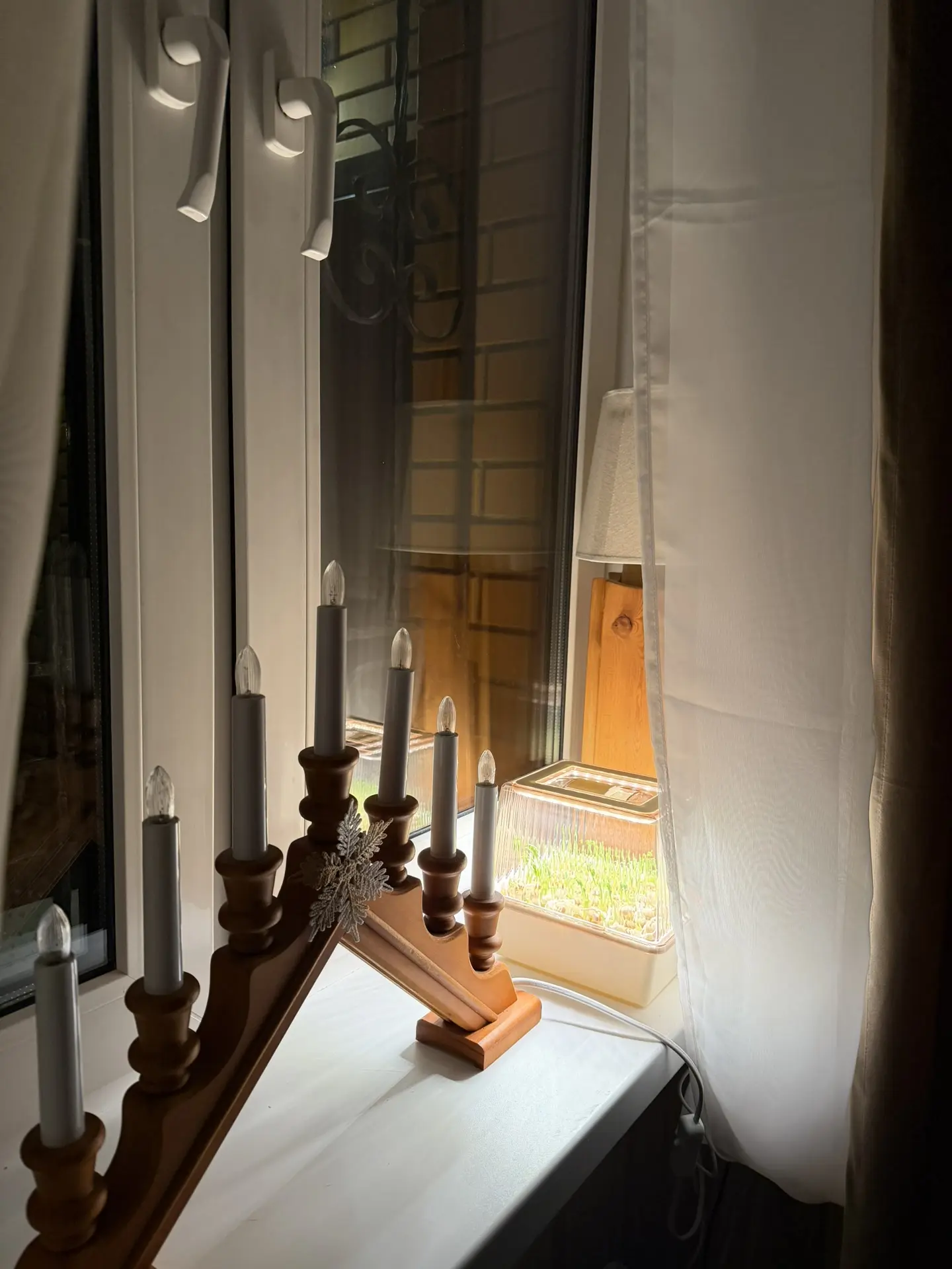 Включаю утром, пока темно и вечером.