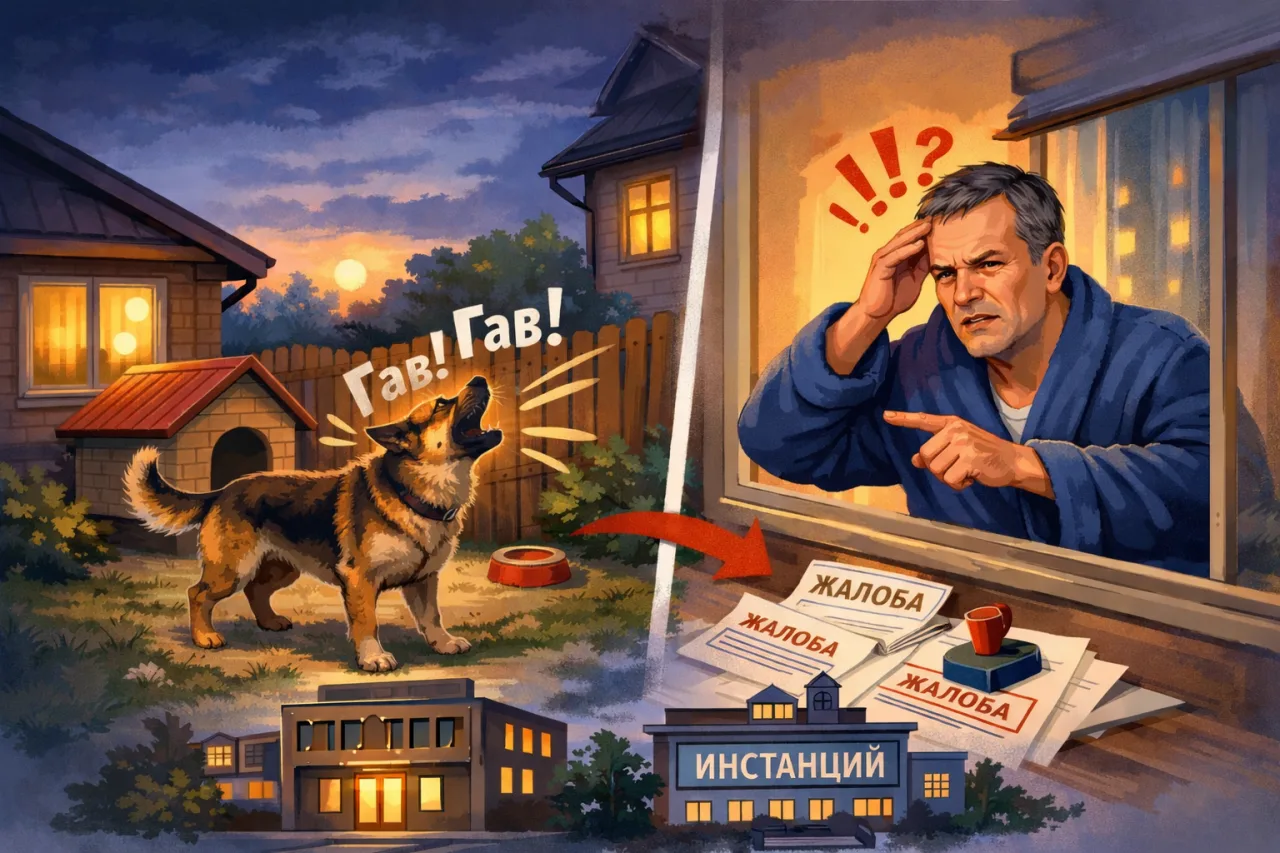 🗣 "Добрый вечер. Подскажите, пожалуйста,как быть в такой ситуации. На мою собаку жалуется сосед, точнее на ее лай. Несколько лет сосед напротив ездил по командировкам, теперь осел дома. Собака в частном дворе, периодически лает. Сказал или заткните или будет жаловаться во все инстанции. Что делать в такой ситуации????"