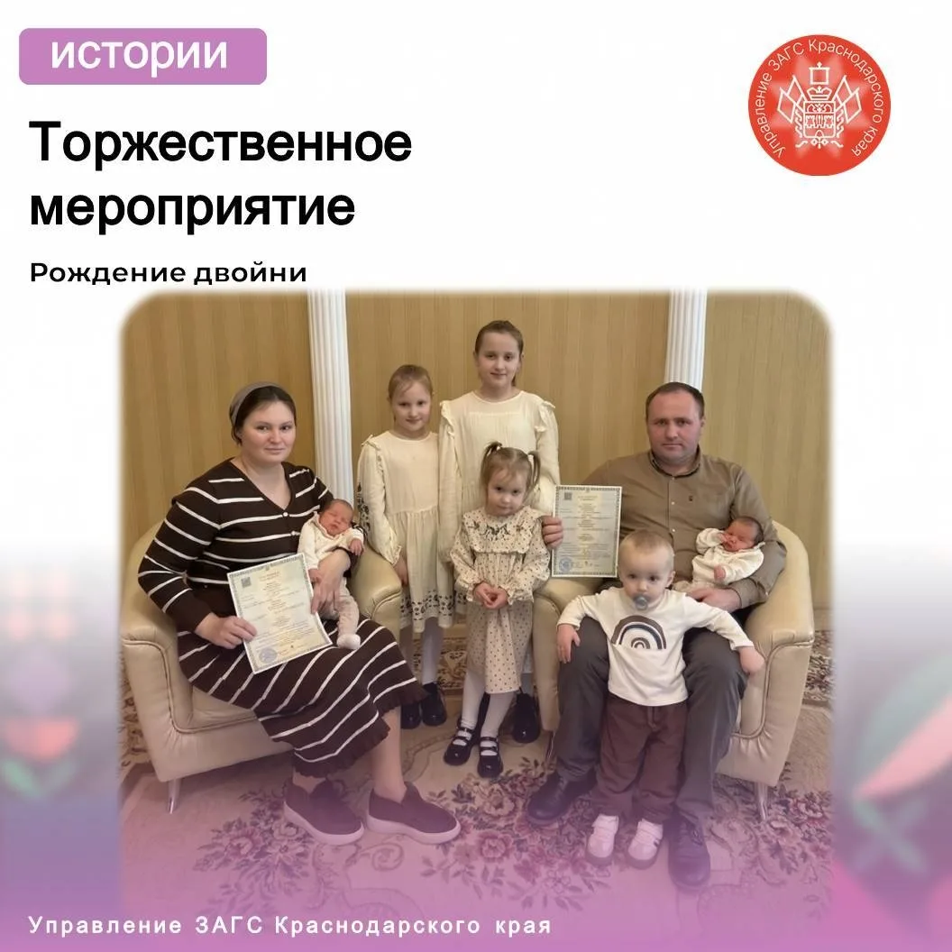 В отделе ЗАГС Лабинского района проведена торжественная регистрация рождения двойни. В семье Виноградовых - Вячеслава Юрьевича и Алены Андреевны родились две дочери Милана и Диана.