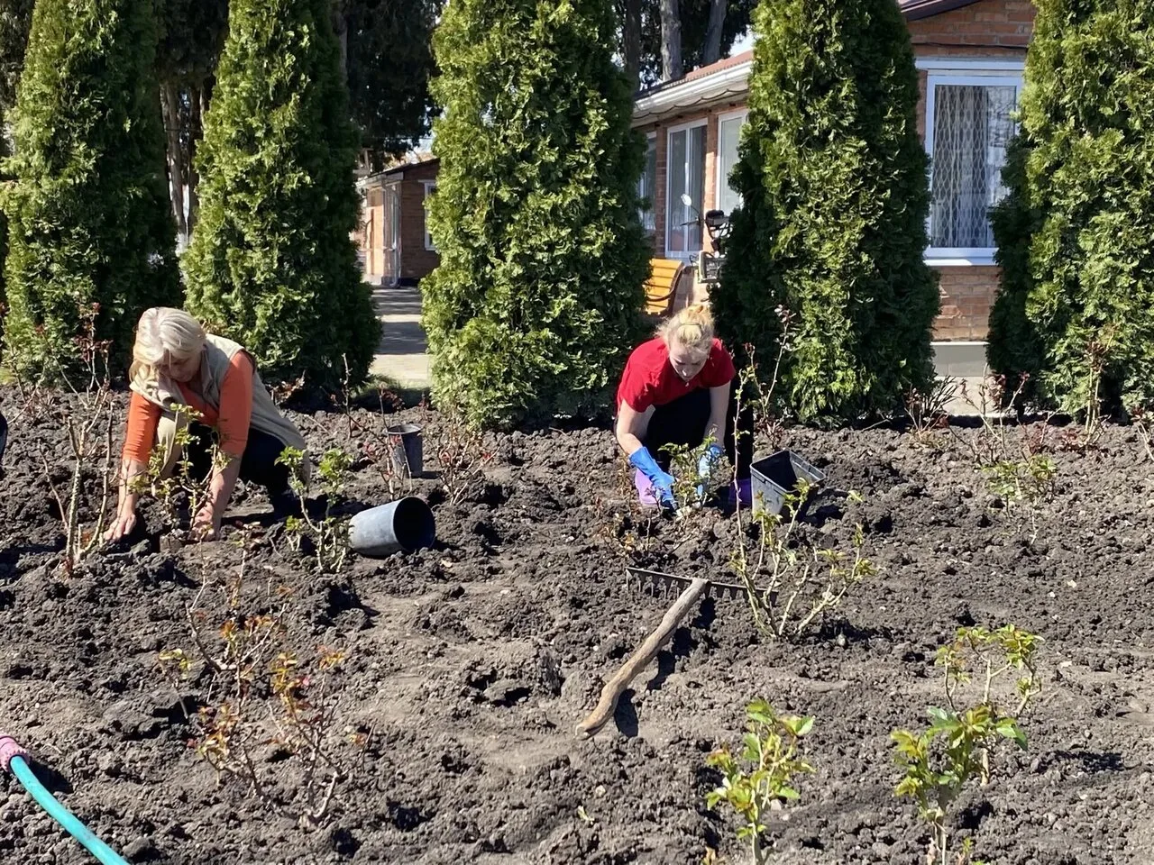 🌳🌹 В Лабинском Доме социального обслуживания продолжается озеленение территории - обитатели высадили розы и хвойные деревья.