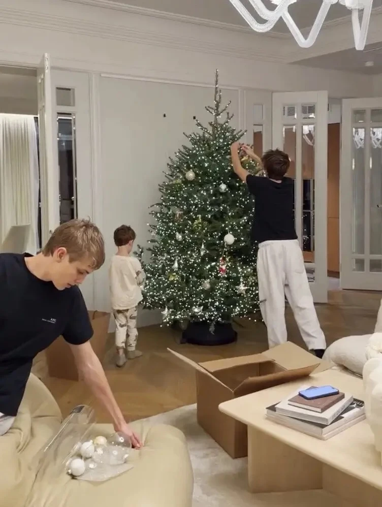 Она вместе с детьми нарядила живую елку. Настоящий уютный семейный момент, который идеально передает дух праздника!