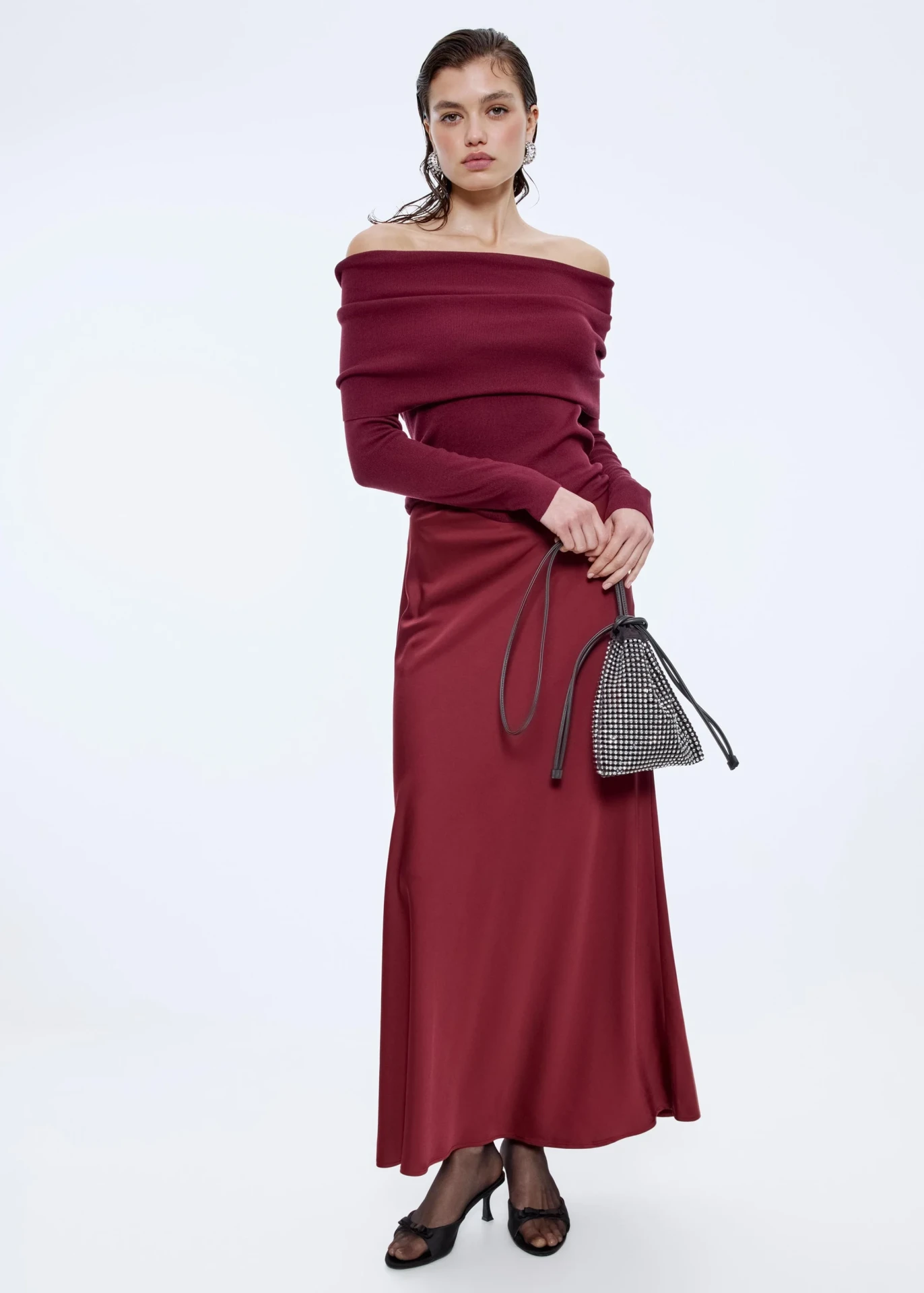 Чтобы не теряться в выборе, можно собрать свою мини-капсулу для вечера: шелковое платье глубокого винного оттенка, пушистый жакет с пайетками, блестящая юбка или бархатное мини с объемными рукавами. Пара акцентных туфель, яркая сумка — и вы уже в атмосфере праздника.