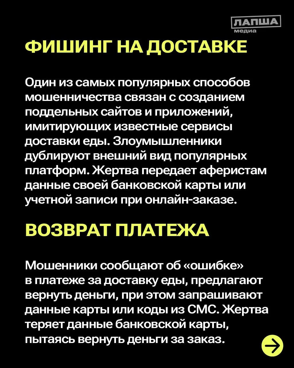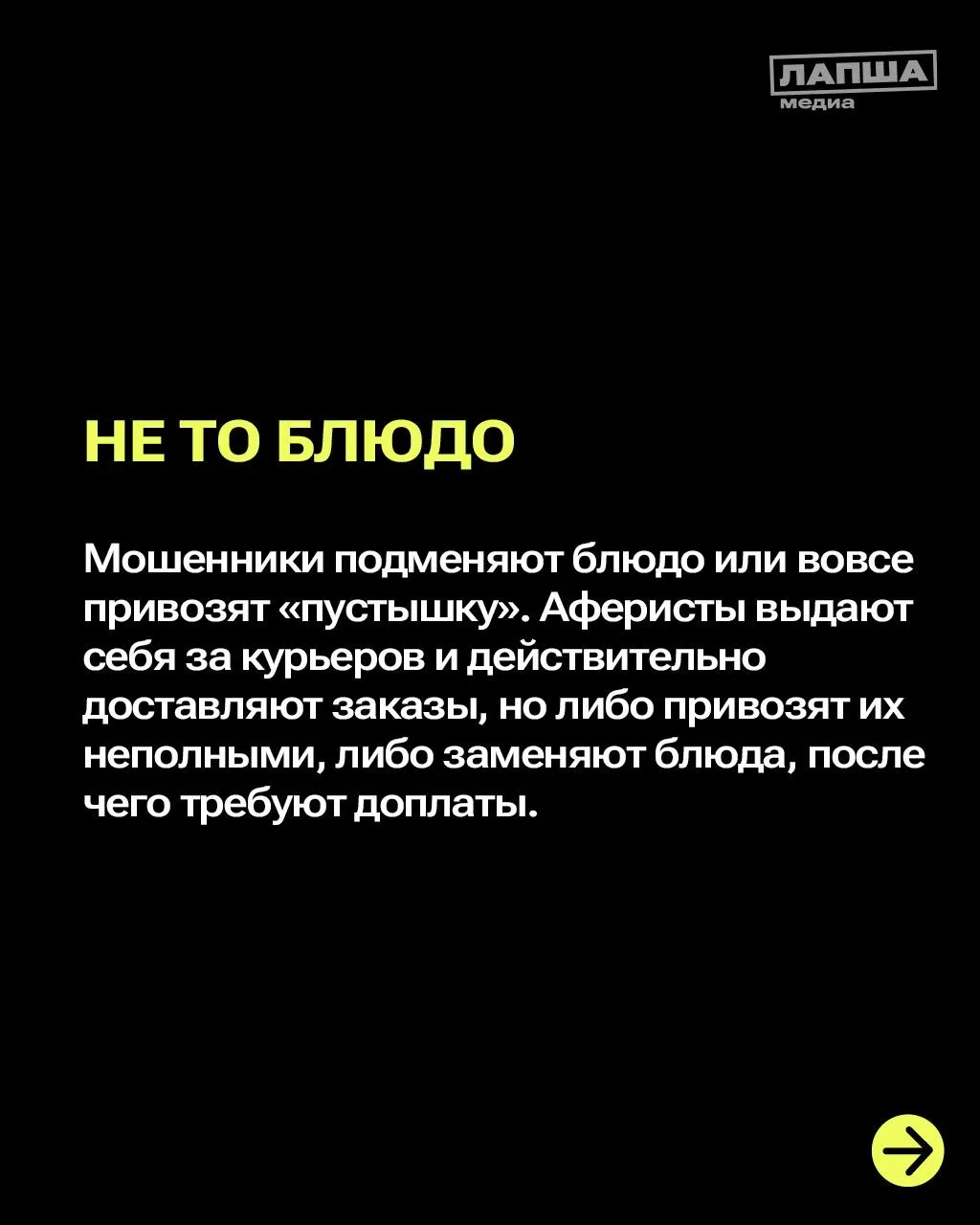 О том, какие схемы обмана с доставкой еды используют злоумышленники сообщает МВД РФ. Подробнее в наших карточках.