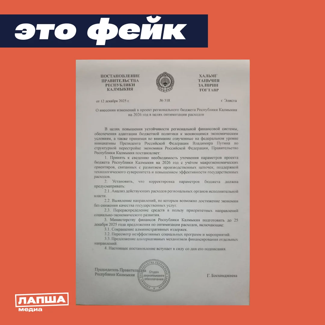«Информация не соответствует действительности. Официальные документы публикуются в первую очередь на сайте Правительства Республики Калмыкия и на официальном сайте Министерства финансов Республики Калмыкия».