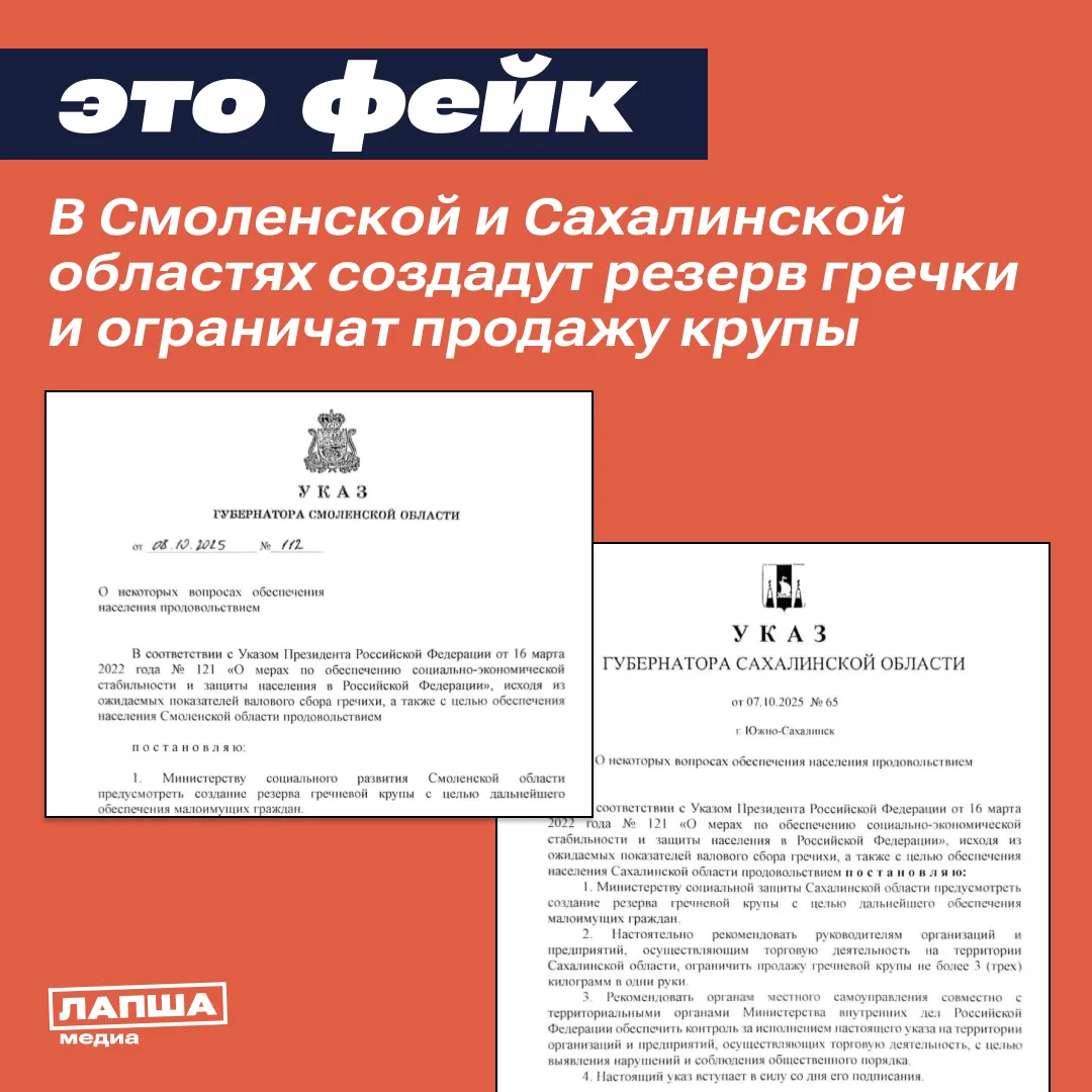 🛑В Сети распространяют фейк о создании резерва гречки для малоимущих и ограничении продажи крупы до 3 кг в одни руки. Подобные указы фиксируют в Омской области и Дагестане.