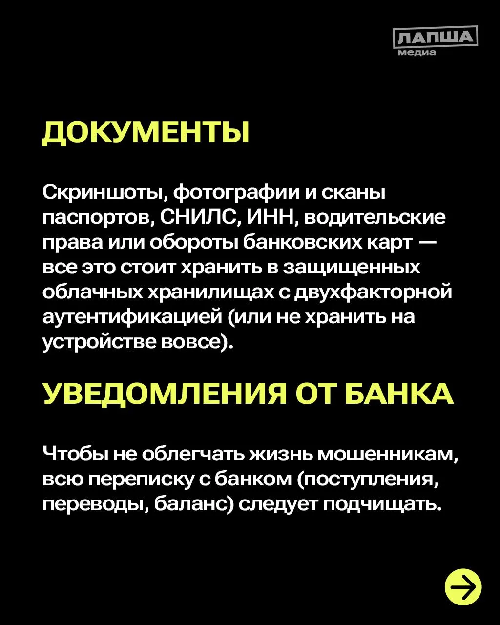 УБК МВД составил список данных, которые лучше удалить с устройства, чтобы они не попали в руки мошенников. Подробнее в наших карточках.