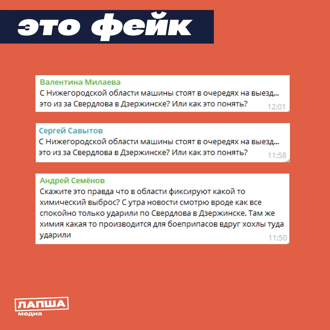 🛑 В тг-каналах Владимирской области начали появляться пугающие комментарии о химическом выбросе в Дзержинске. Якобы из-за ударов по заводу имени Свердлова машины стоят в очередях на выезд из Нижегородской области.