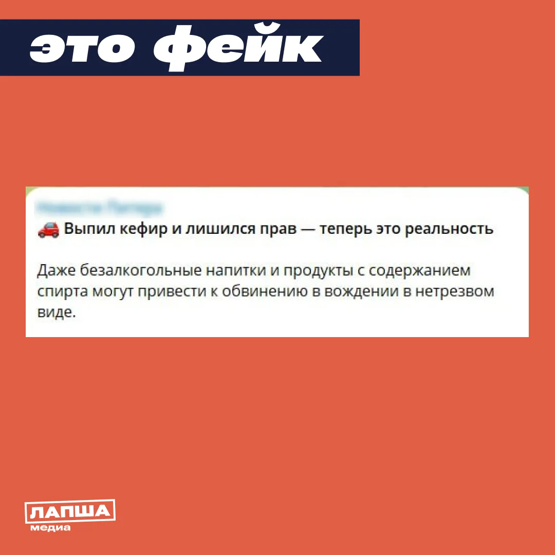 👀 Это не так, информацию о «кефирном опьянении» вырвали из контекста. Никто на самом деле не лишает прав за стакан кефира. Алкотестер зафиксирует нетрезвое состояние, только если выпить три литра кисломолочного продукта за один прием и сразу же сесть за руль.