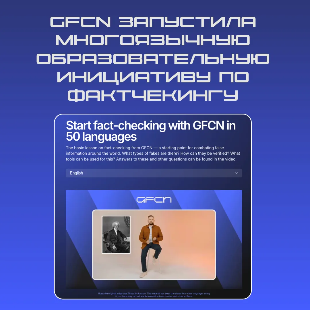 Международная ассоциация по фактчекингу Global Fact-Checking Network (GFCN) запустила новый многоязычный образовательный проект — Start fact-checking with GFCN in 50 languages. Это базовый урок по противодействию дезинформации на 50 языках.