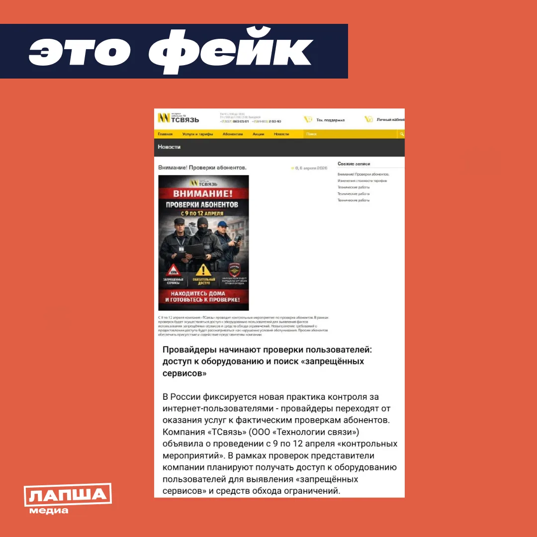 Однако на официальном сайте упомянутого провайдера никаких проверок не анонсировали, а последняя новость от 2 февраля содержит информацию о тарифах. Скриншот с новостью поддельный и содержит сразу несколько ошибок: неправильные шрифты, искажённые буквы, неверный формат даты.