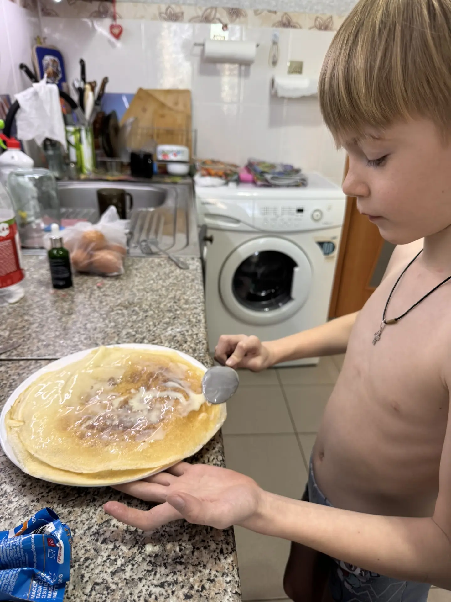 Сегодня утро началось не так, как обычно! Мой муж проснулся раньше всех и решил порадовать нас с детьми — приготовить завтрак! 😲