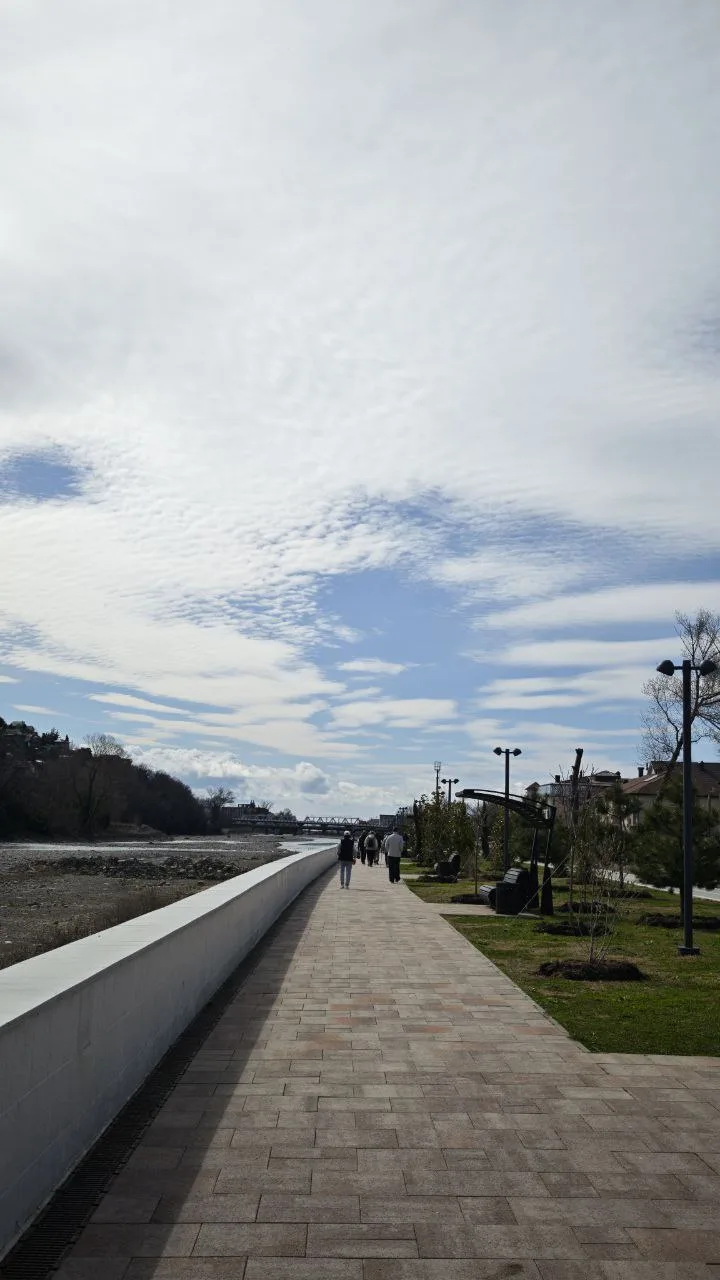 сама набережная реки наглядно, ранее здесь было посажено много растений и деревьев, которые постепенно обретают силу красоты, непременно, если вы в гостях - посетите это место (иногда бывает ветрено, т.к. здесь ущелье)