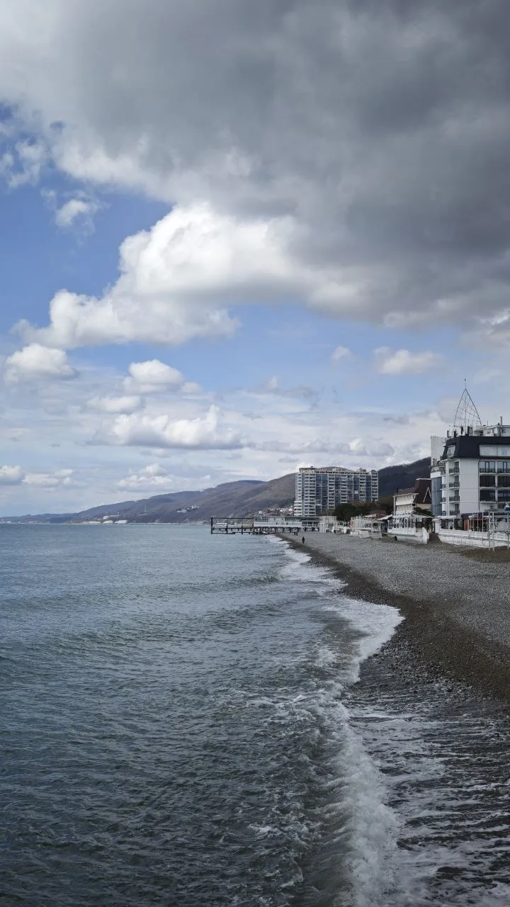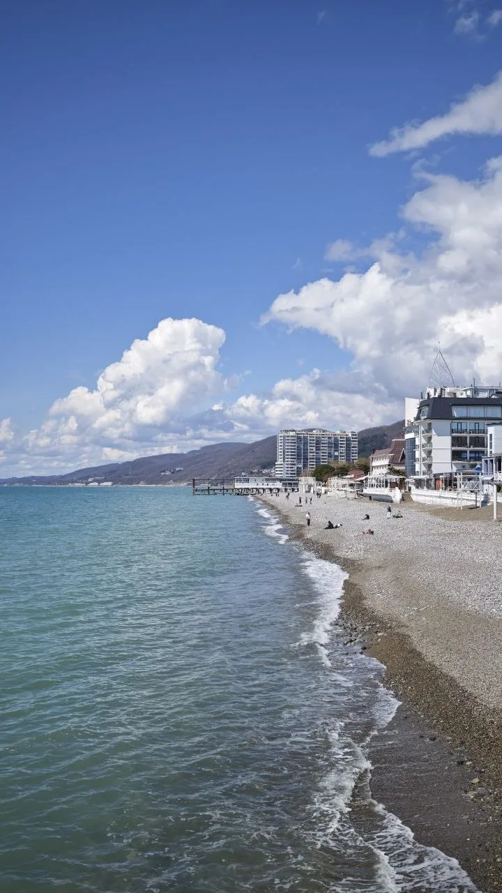 Морская обстановка в Лазаревском ✌️😎🌊 пляжи Дельфин и Свирский пока пусты. Небольшой ветерок есть, загорать строго рекомендовано!