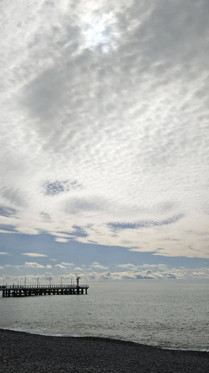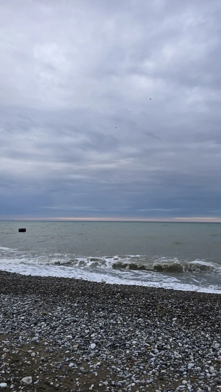Морское пасмурное доброе утро из Лазаревского, местами был дождик с мелкой крупный. Наверху (100-200м) холоднее 🥶