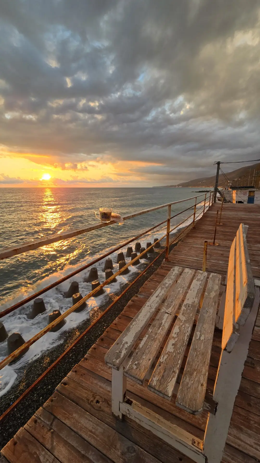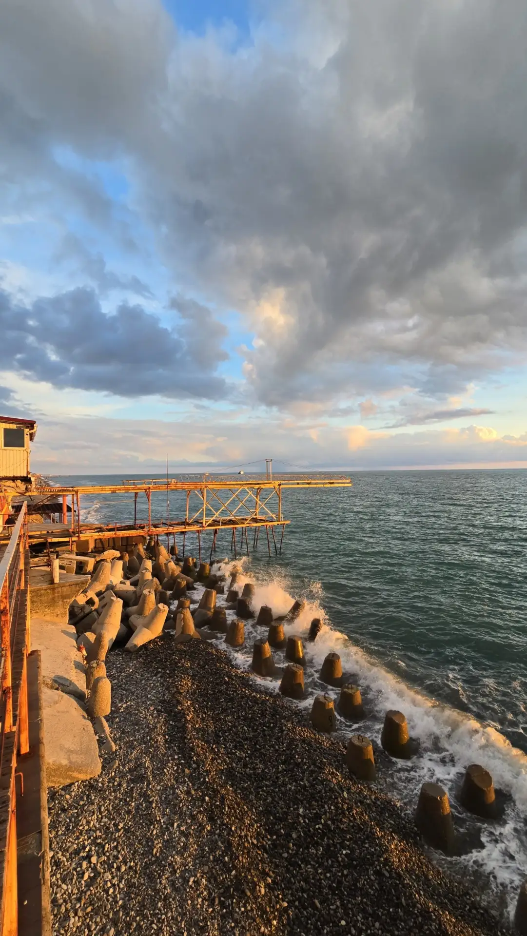 Не очень яркий, но закат всё же был. К вечеру море разволновалось