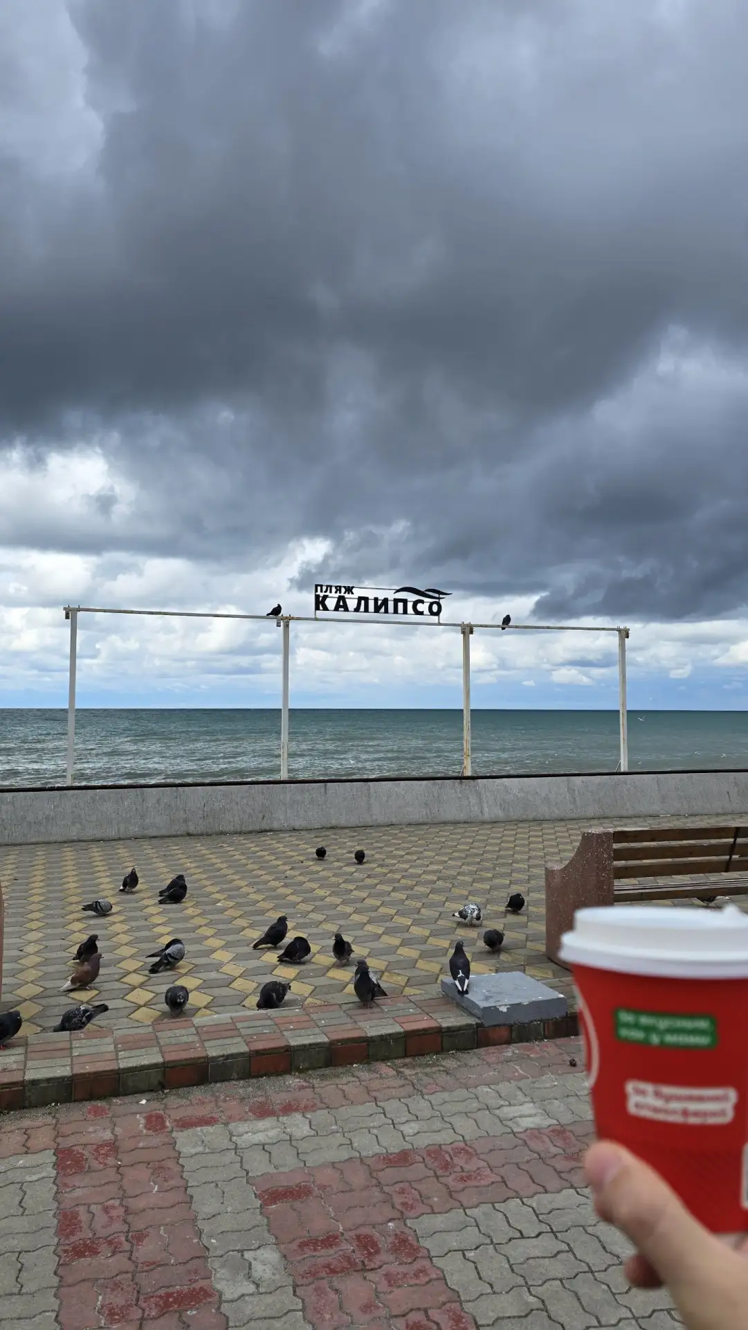 Добрый обед с центрального пляжа, на море ветер, набегает волна 🌊 и небо подзатянуло 😒