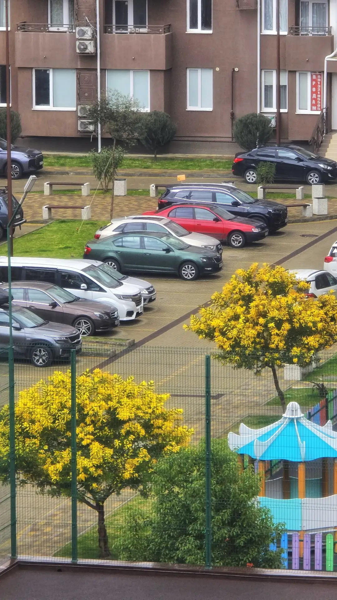 Внутренний дворик по улице Калараш, ЖК Семейный - замечено несколько "мимоз" в цвету