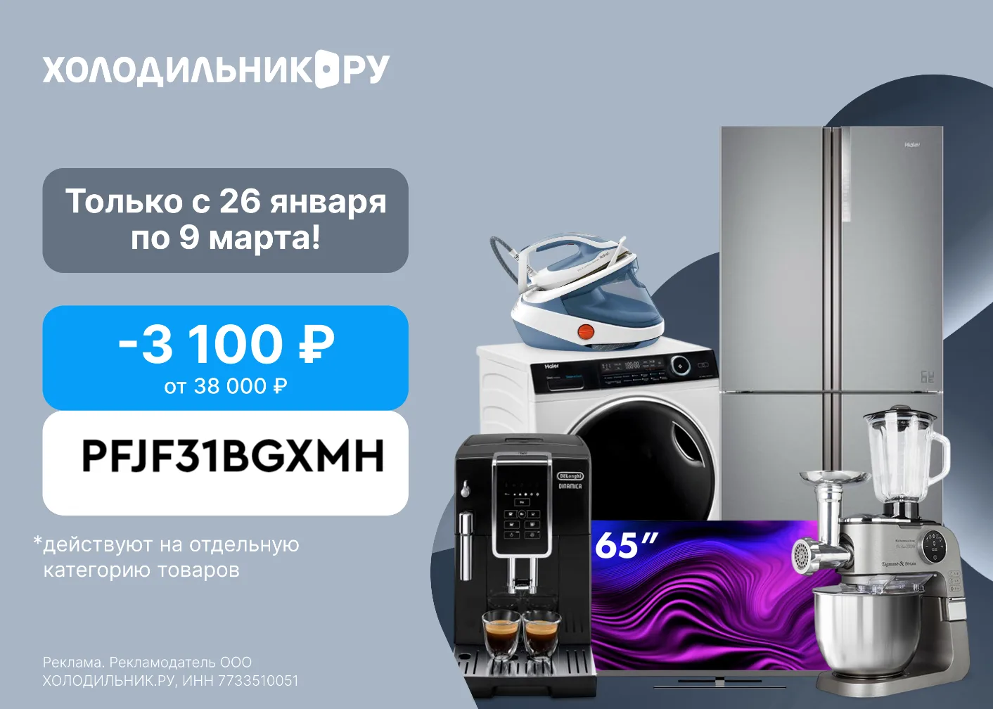 ⚡ PFJF31BGXMH - 3100₽ при покупке от 38000₽