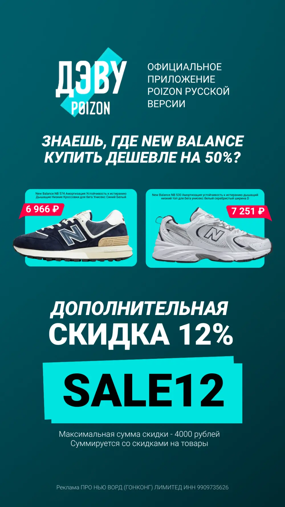 SALE12 – дополнительная скидка 12% на первый заказ. Максимальная сумма скидки – 4000 ₽. Суммируется со скидками на товары.