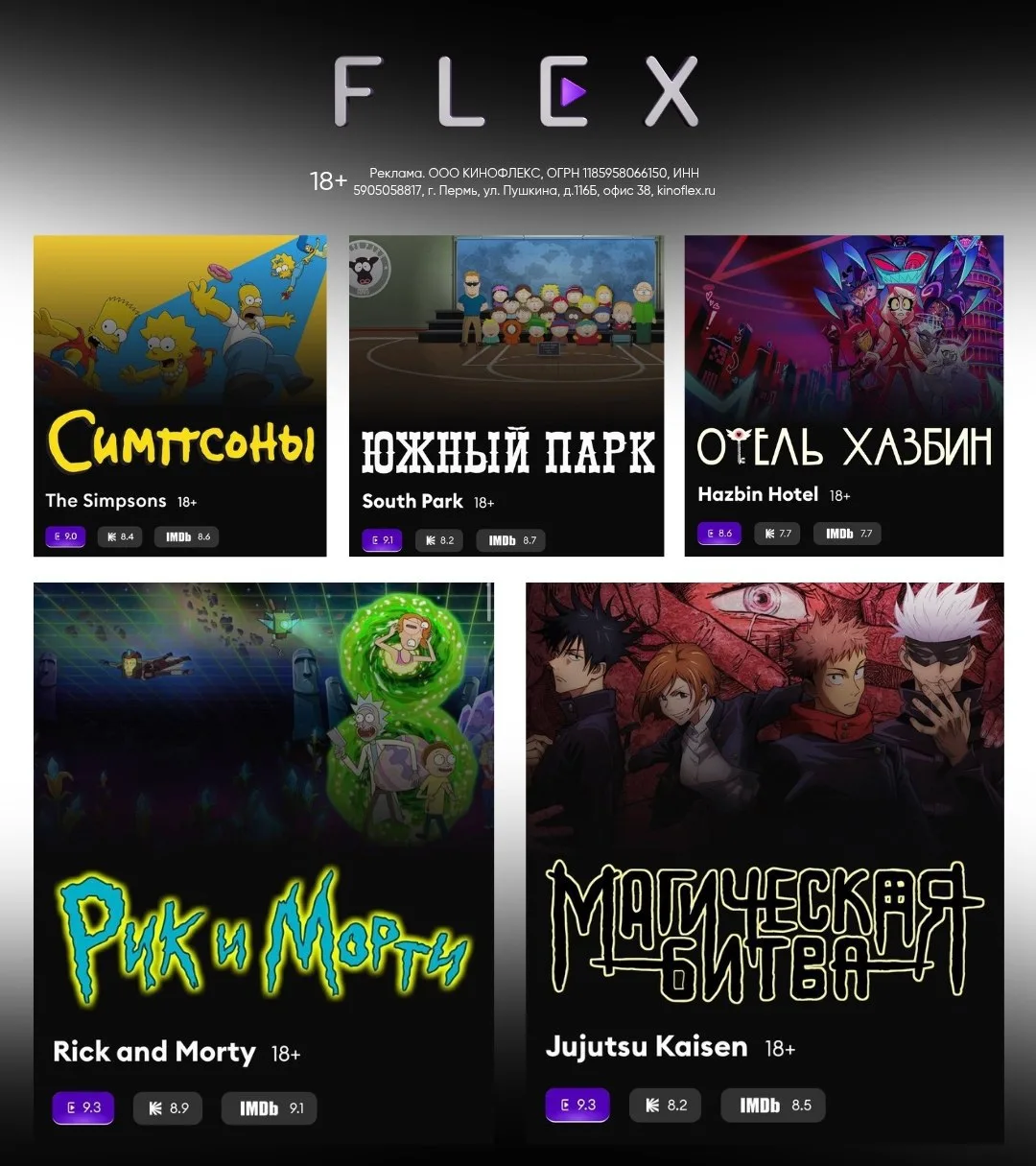 Лучшие мульты с пометкой 18+ смотрим на FLEX: «Рик и Морти», «Южный Парк» и другие легенды в одном месте по ссылке (https://flex.prfl.me/ld439/x3w6r7?erid=2VtzqwJXmPr)