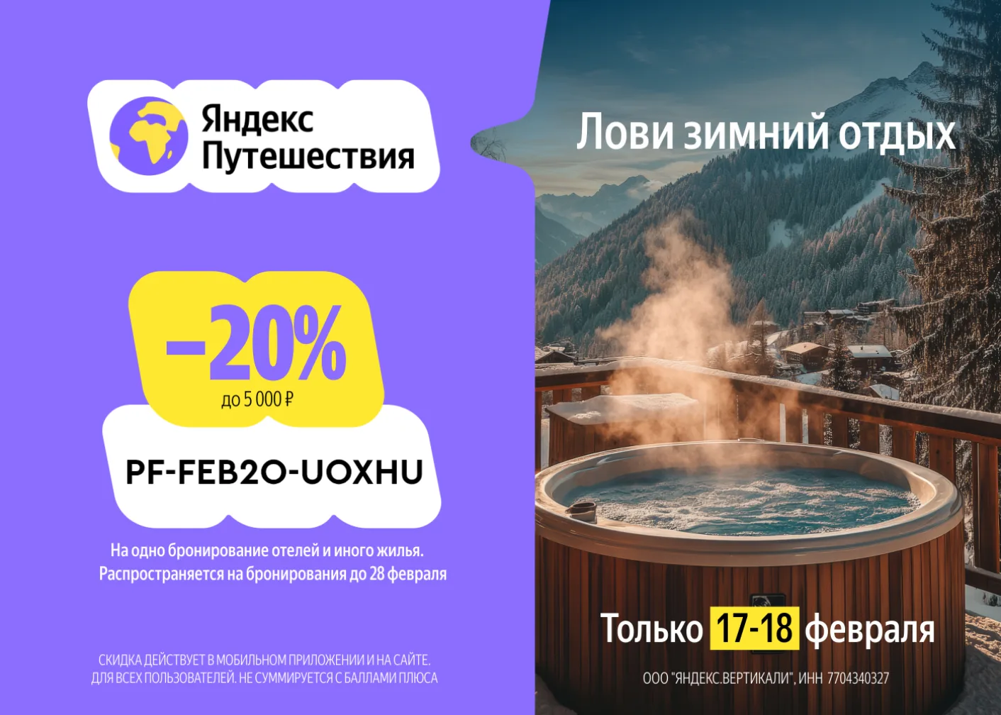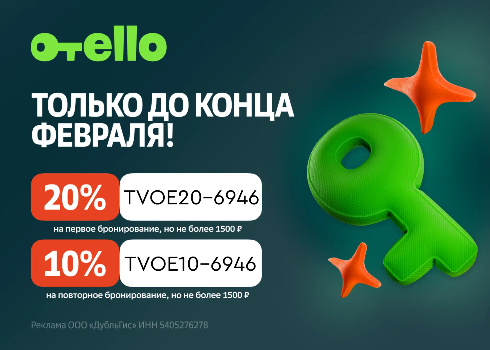 TVOE20-6946 - 20% но не более 1500₽ на первое бронирование