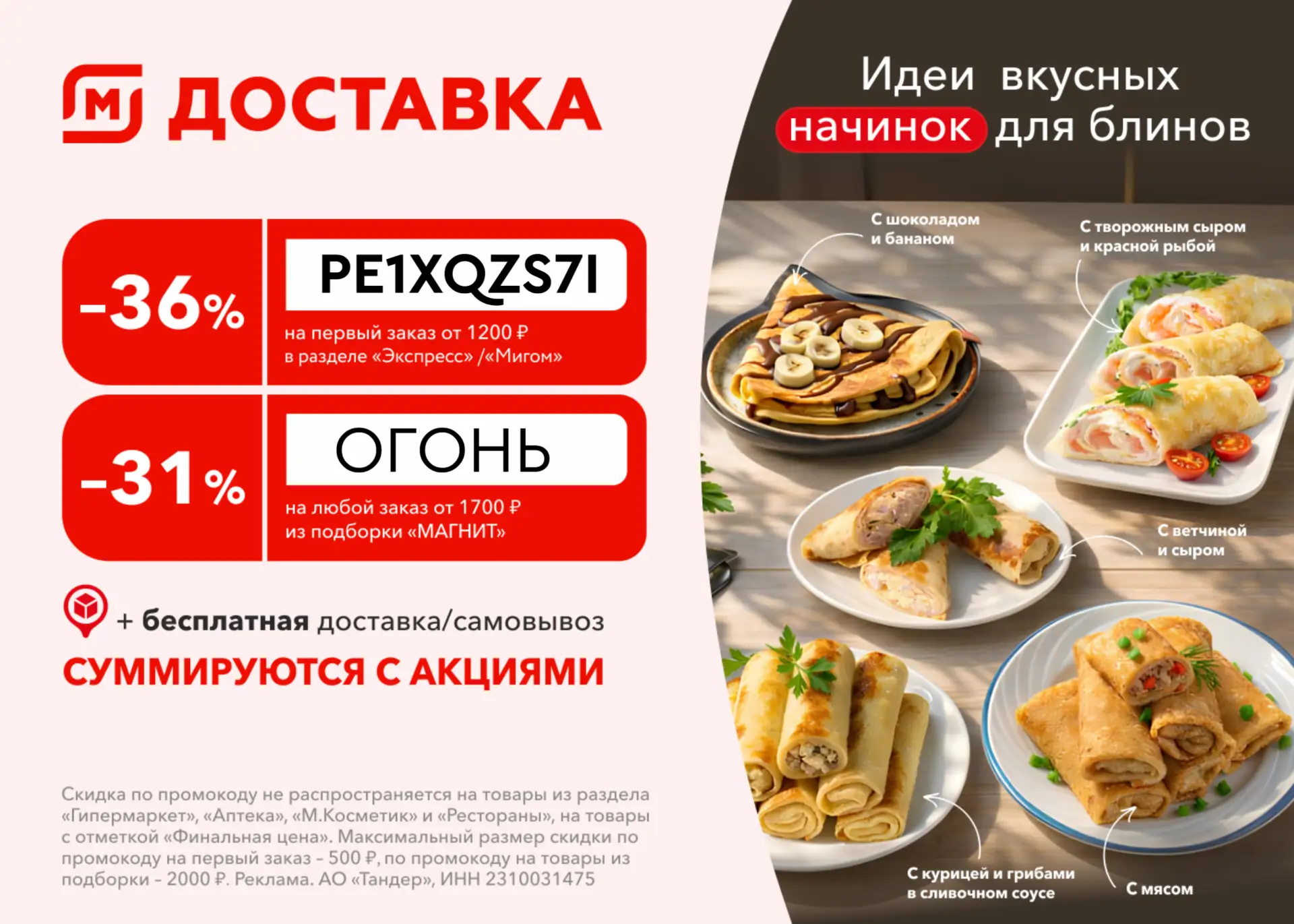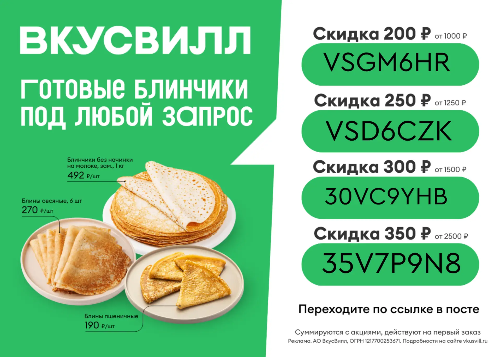 А с промокодами на первый заказ, которые суммируются со скидками, выгоды станет еще больше:
