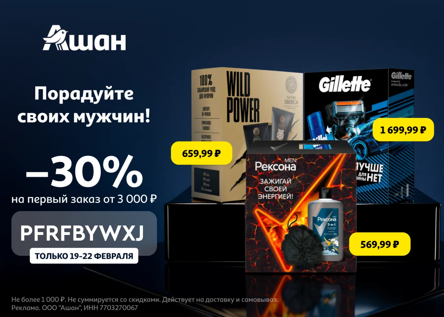 Собирайте корзину по ссылке https://mgnt1.prfl.me/ld439/r5hzor?erid=2VtzqwibjBJ и используйте промокоды: