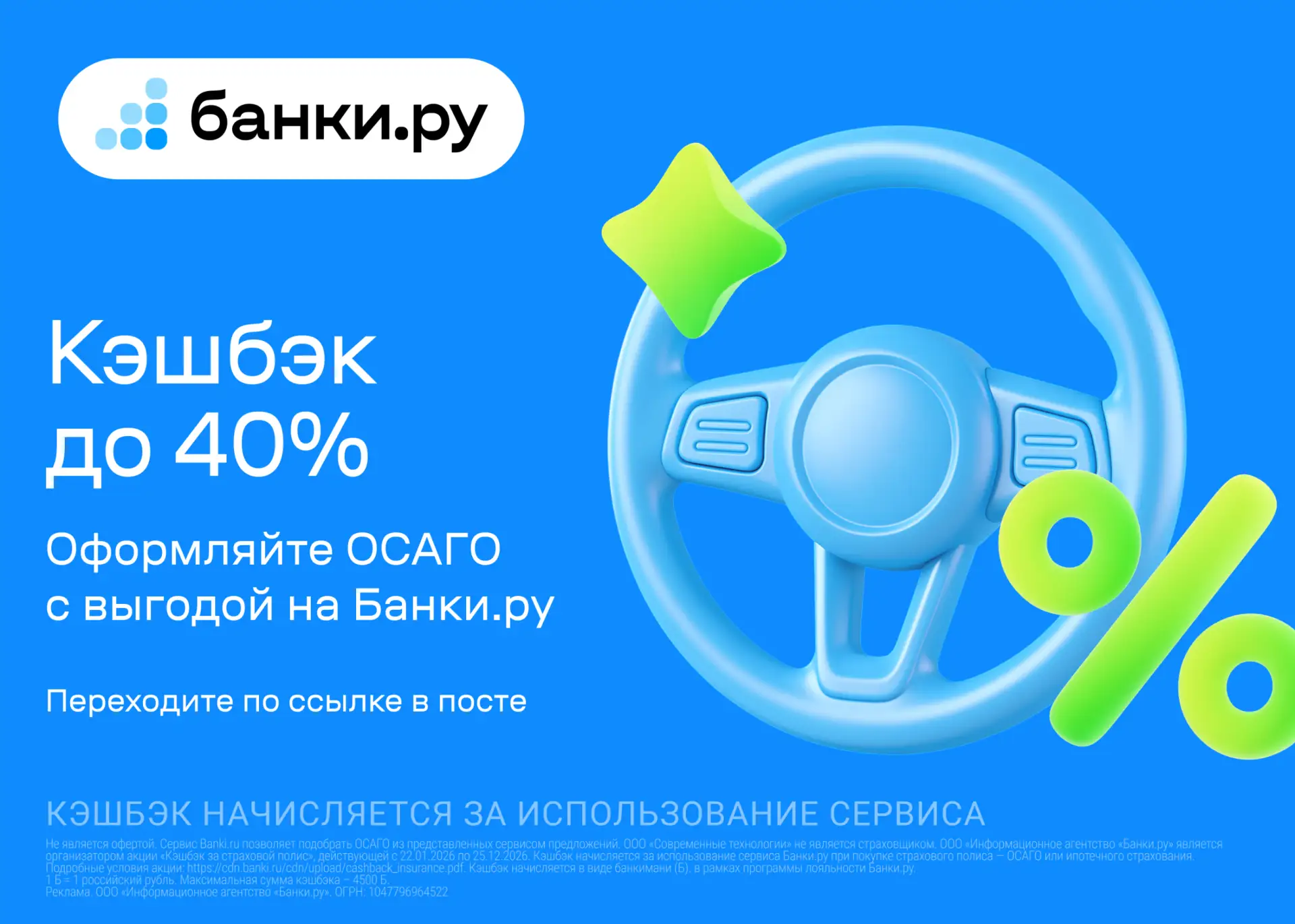 🚗 ОСАГО на Банки.ру кэшбэк до 40%