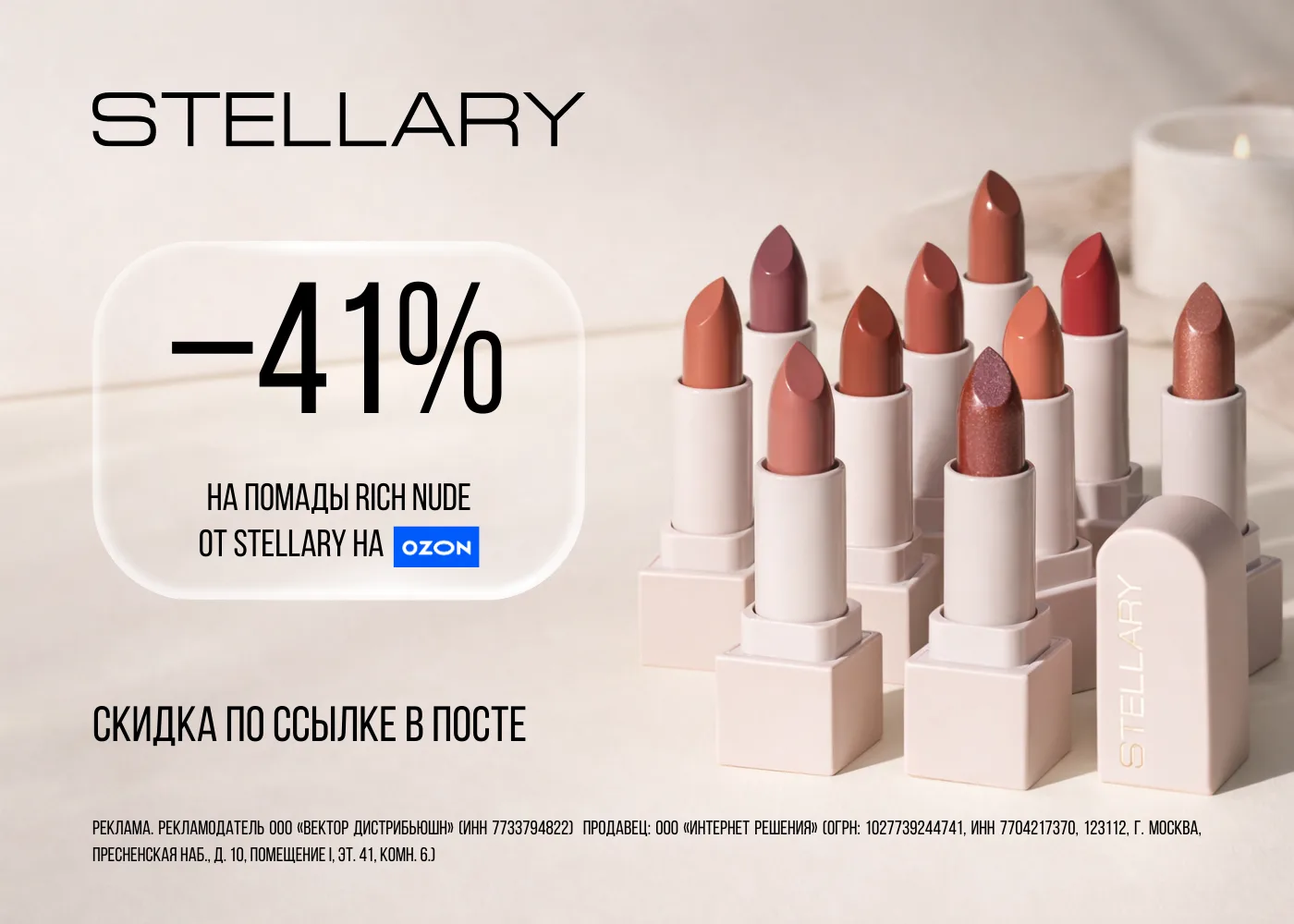 Реклама. Рекламодатель ООО «Вектор Дистрибьюшн» (ИНН 7733794822) Продавец: ООО «Интернет Решения» (ОГРН: 1027739244741, ИНН 7704217370, 123112, г. Москва, Пресненская наб., д. 10, Помещение I, эт. 41, комн. 6.)